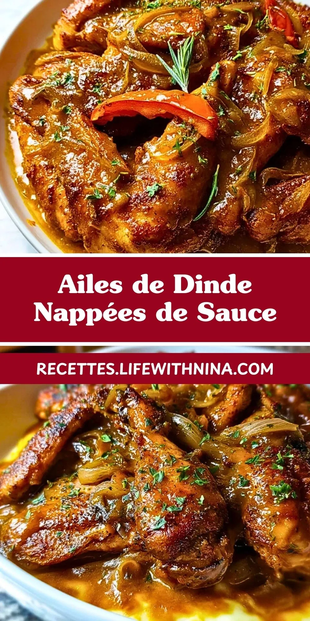 Les ailes de dinde nappées de sauce sont un plat convivial et généreux qui séduit par sa simplicité et la richesse de ses saveurs. Cuits doucement dans une sauce onctueuse aux oignons et herbes fraîches, ces morceaux deviennent irrésistiblement tendres, absorbant chaque nuance de la marinade. Parfait pour les grands repas en famille ou entre amis, ce plat apporte chaleur et réconfort autour de la table.