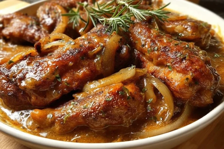 Des ailes de dinde lentement mijotées dans une sauce onctueuse aux oignons, relevées d’herbes fraîches et d’un soupçon de vin blanc. Un plat familial réconfortant et économique, parfait pour les grandes tablées ou les repas du dimanche.