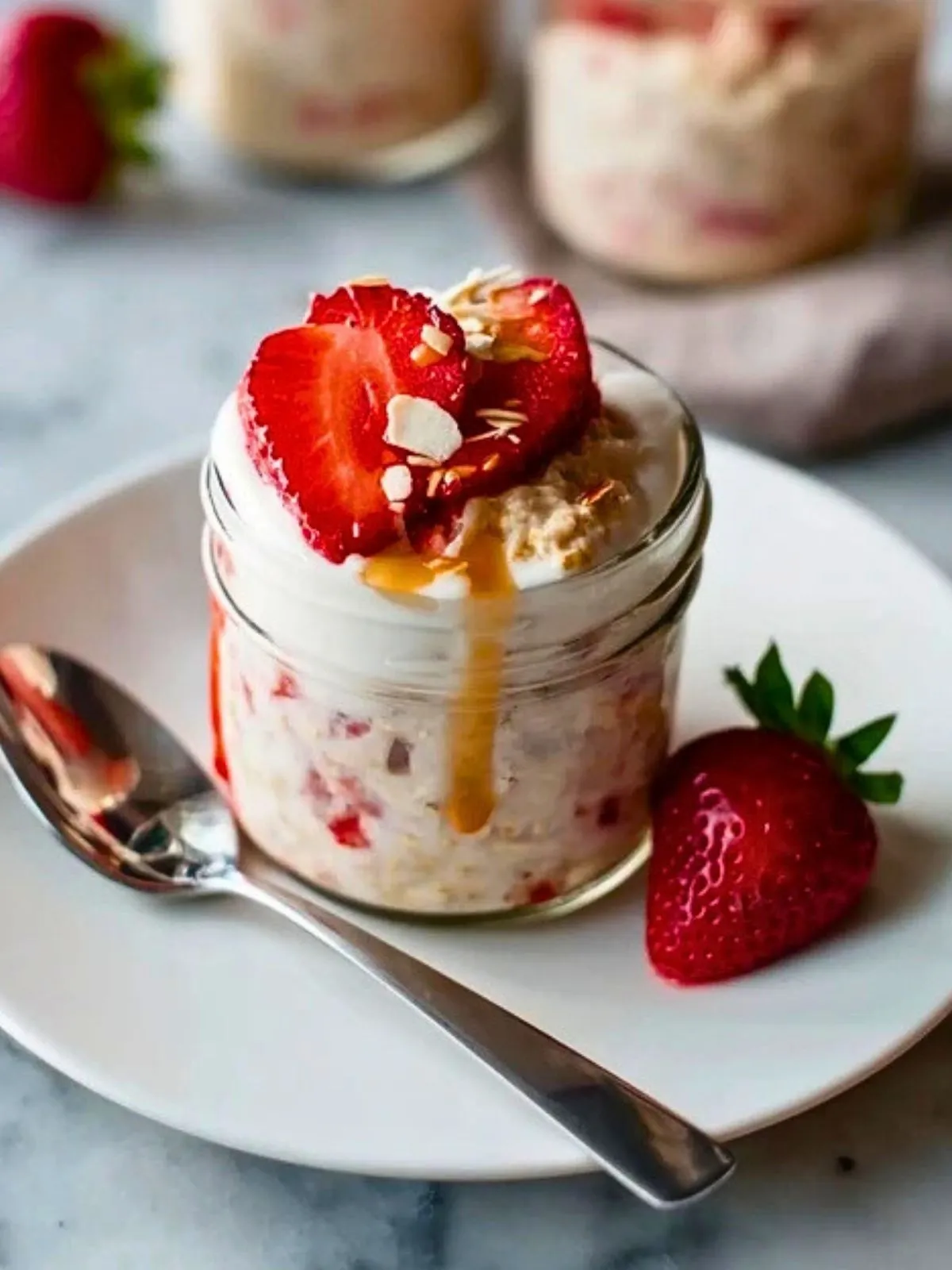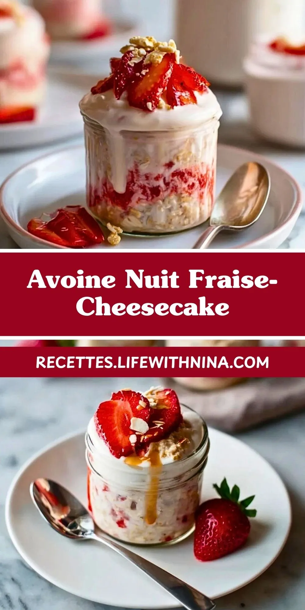 Keywords: overnight oats, cheesecake, fraises, petit-déjeuner sain
