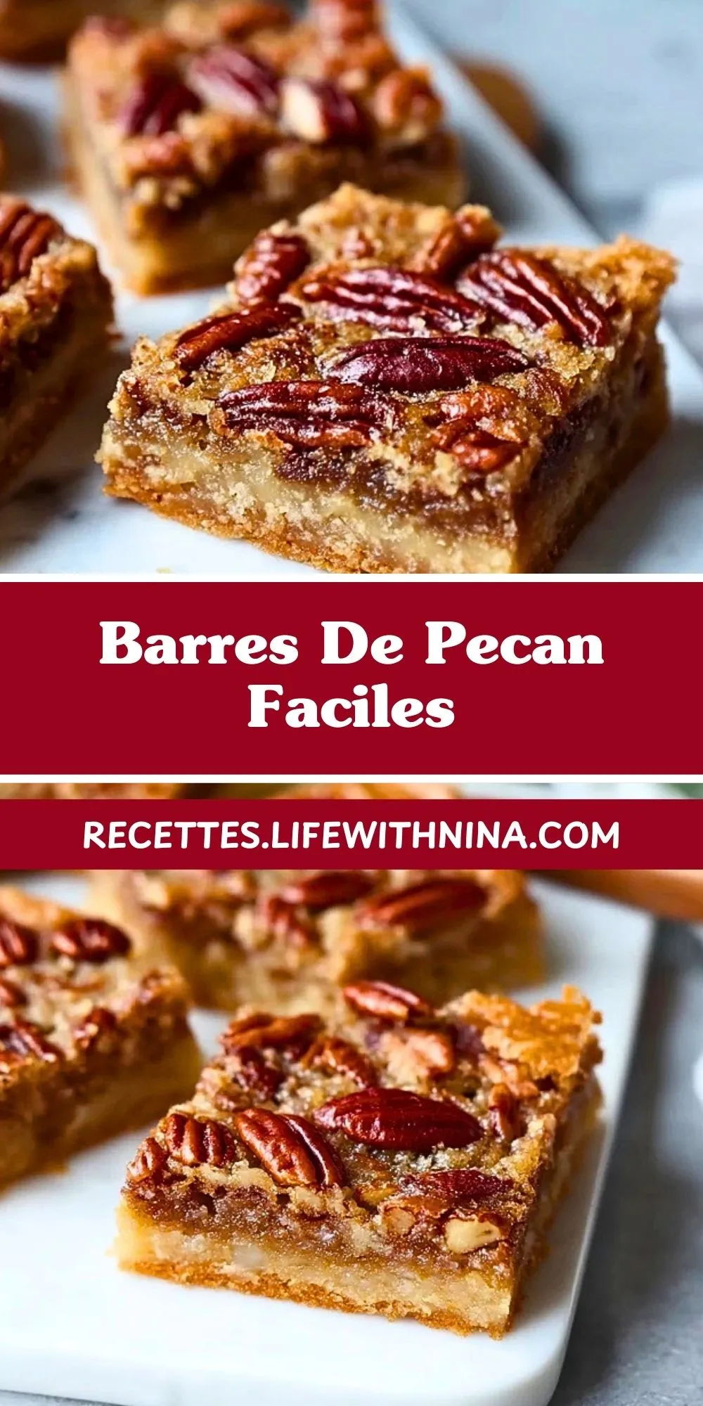 Ces barres de pécan faciles marient une base sablée fondante à une garniture de noix de pécan caramélisées, idéales à partager pour un goûter, un dessert ou un café gourmand. À la fois croquantes, moelleuses et très parfumées, elles séduiront tous les amateurs de douceurs maison.