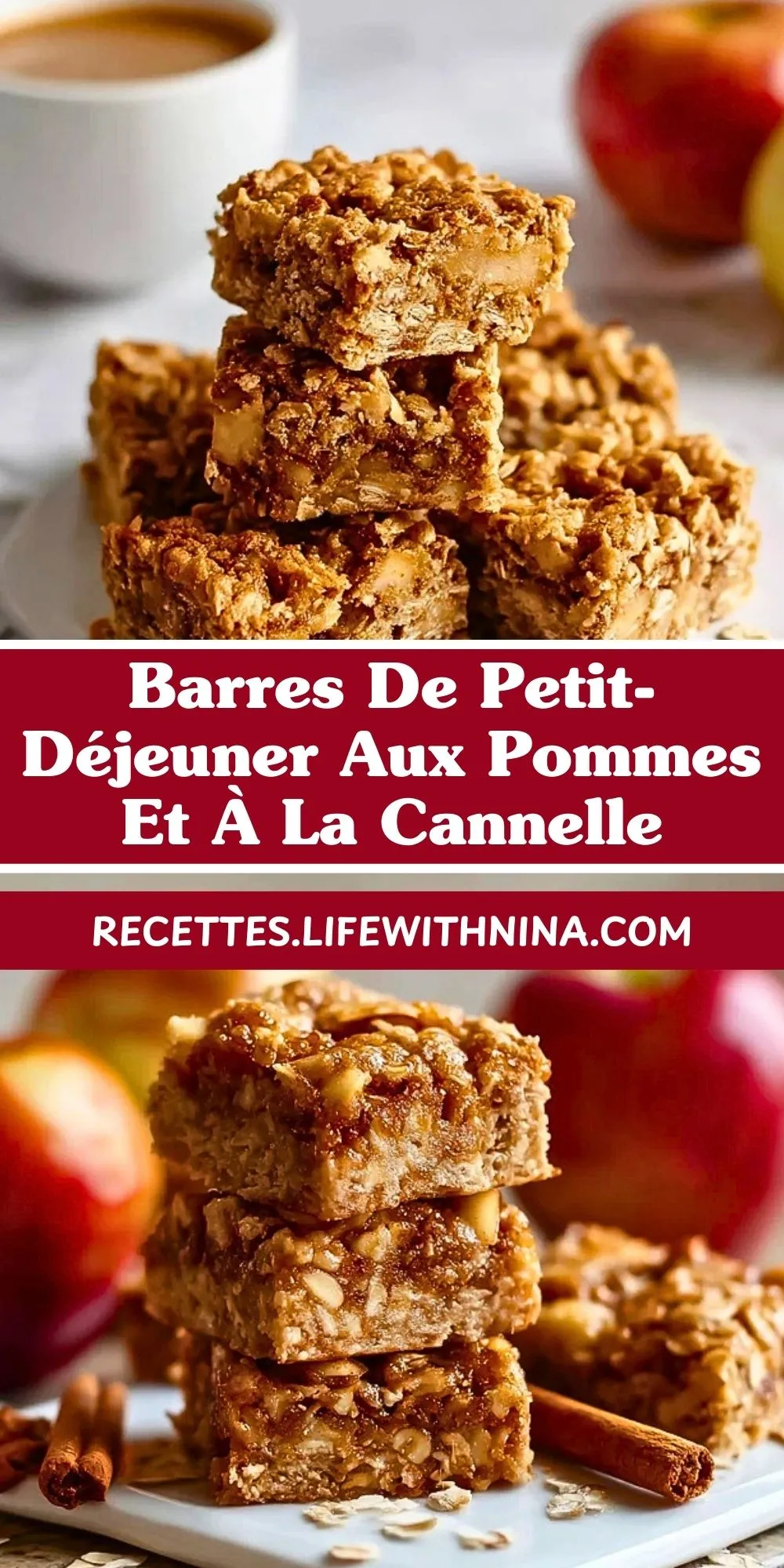 Ces barres de petit-déjeuner aux pommes et à la cannelle sont moelleuses, parfumées, et riches en fibres. Faciles à préparer et parfaites à emporter, elles vous offrent une pause gourmande et saine, idéale pour bien commencer la journée ou combler un petit creux.