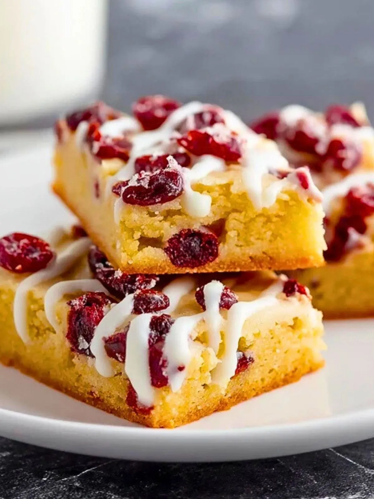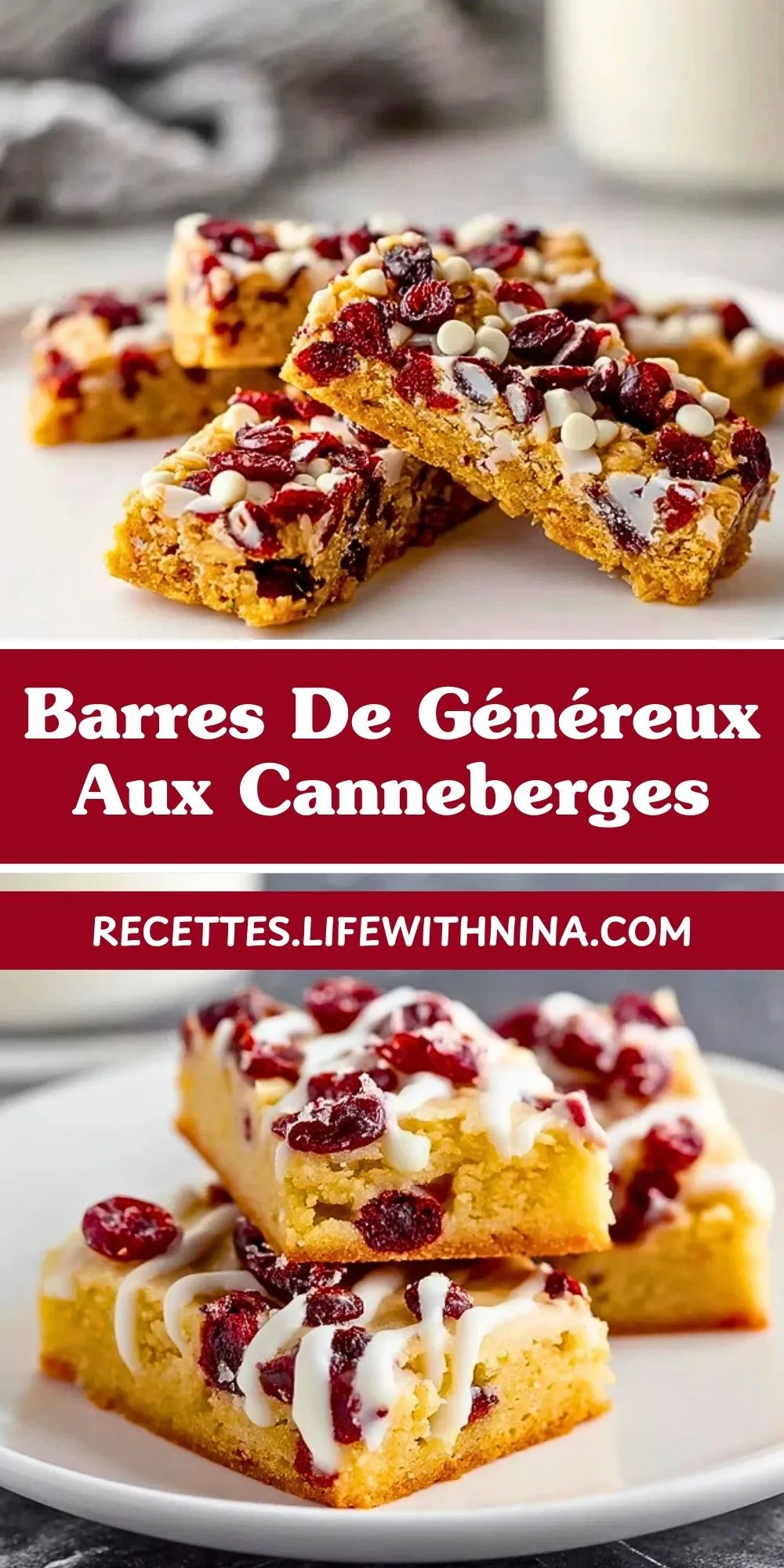 De délicieuses barres sablées garnies de chocolat blanc fondant et de canneberges acidulées, parfaites pour une pause gourmande ou à offrir pendant les fêtes. Rapides à préparer, elles séduisent par leur équilibre de saveurs sucrées et fruitées.