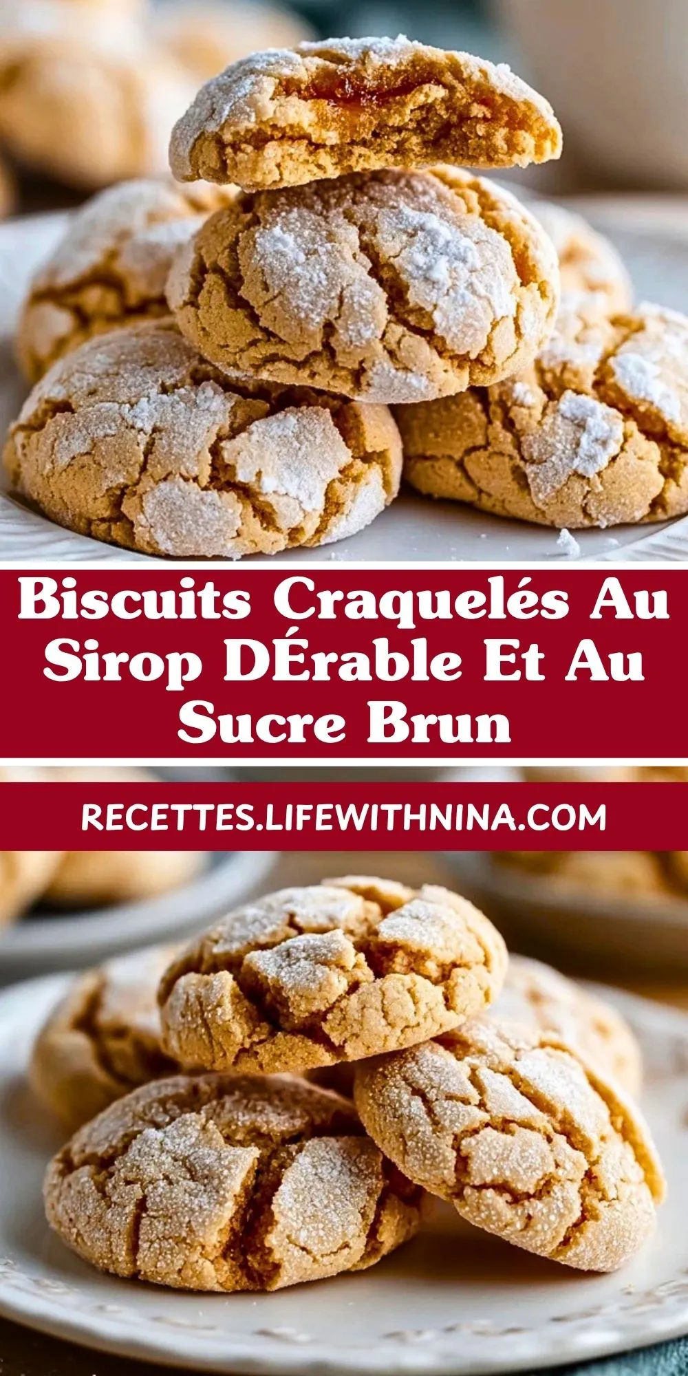 Ces biscuits craquelés au sirop d’érable et au sucre brun sont tendres à cœur, délicatement parfumés et recouverts d’une fine couche sucrée qui révèle leurs jolies fissures à la cuisson. Ils sont parfaits pour une pause gourmande, avec des saveurs chaudes et réconfortantes qui rappellent les biscuits maison des saisons fraîches.