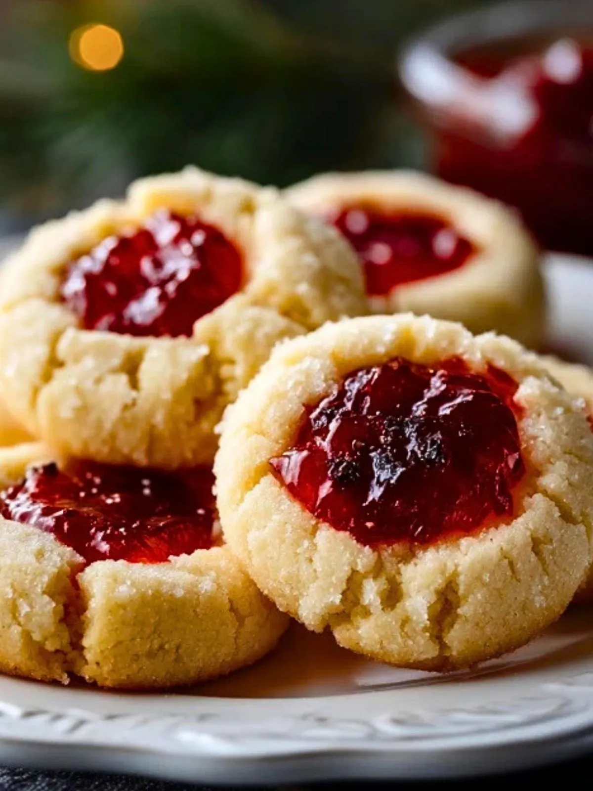 Servez ces biscuits de Noël aux framboises avec un thé, un café ou un chocolat chaud. Ils sont parfaits sur un plateau de douceurs de fête, aux côtés de sablés, de biscuits épicés ou de petites meringues. Leur centre fruité apporte une note colorée qui les rend particulièrement jolis sur une table de réception ou dans une boîte à biscuits maison.