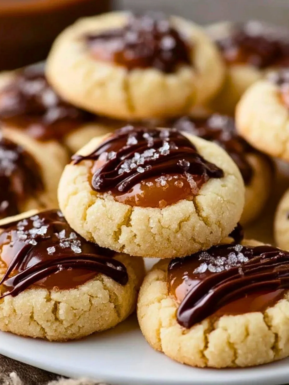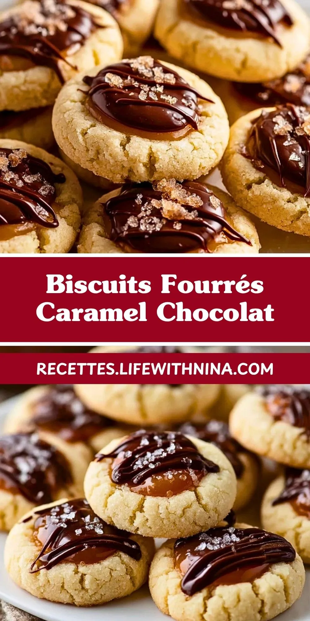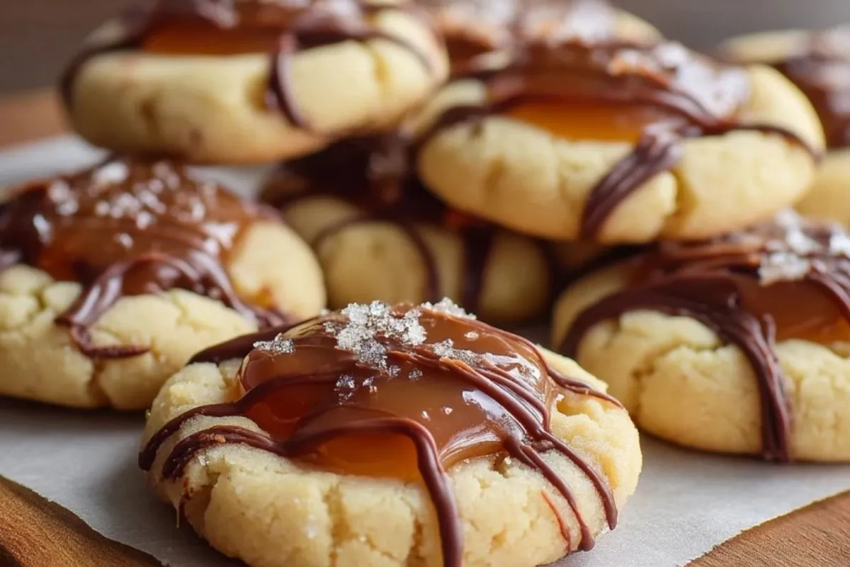 Parce qu’ils combinent trois textures dans une seule gourmandise : une pâte douce et beurrée, un caramel généreux qui reste souple après refroidissement, et une touche de chocolat qui équilibre la sucrosité. Ce sont aussi des biscuits très pratiques à préparer à l’avance, faciles à personnaliser avec une pointe de fleur de sel ou un chocolat plus corsé selon vos envies.
