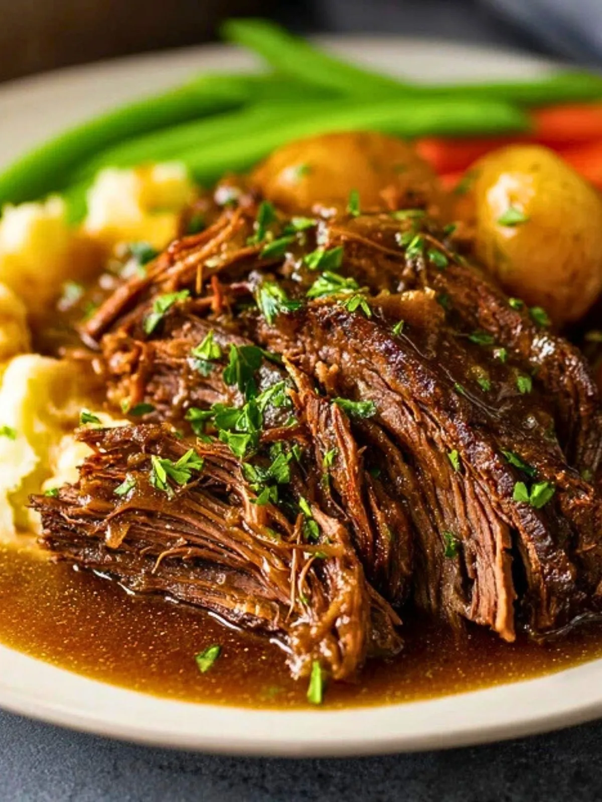 Vérifiez la tendreté de la viande et des légumes. Ajustez l’assaisonnement si nécessaire. Servez bien chaud, nappé de sauce et saupoudré de persil frais si désiré.
