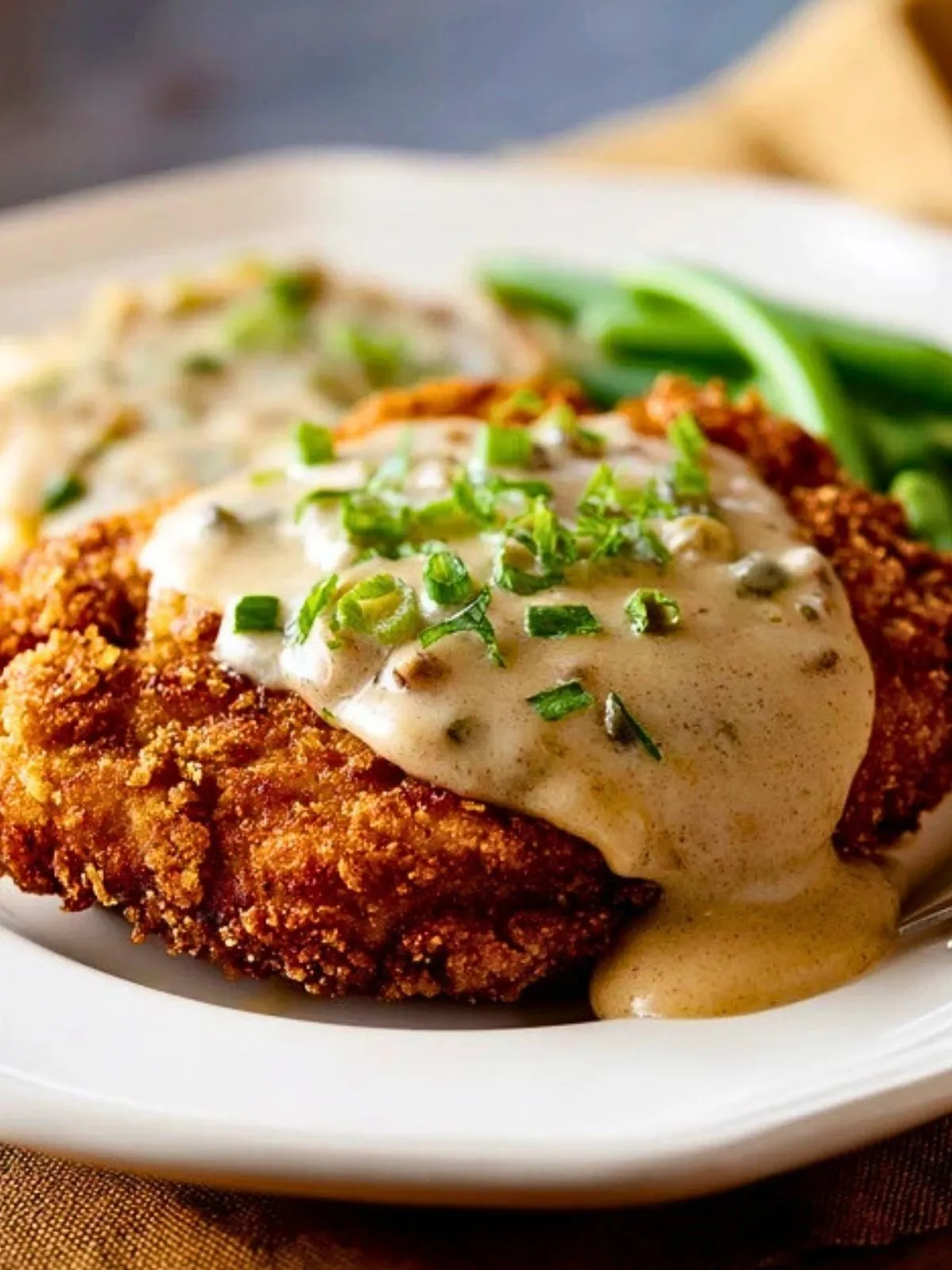 Le Boeuf Pane Avec Sauce Cremeuse combine une escalope de boeuf tendre, enrobee d une panure ultra croustillante, avec une sauce onctueuse au bouillon et a la moutarde. Un plat genereux et reconfortant, parfait avec une puree, des haricots verts ou des pates fraiches.