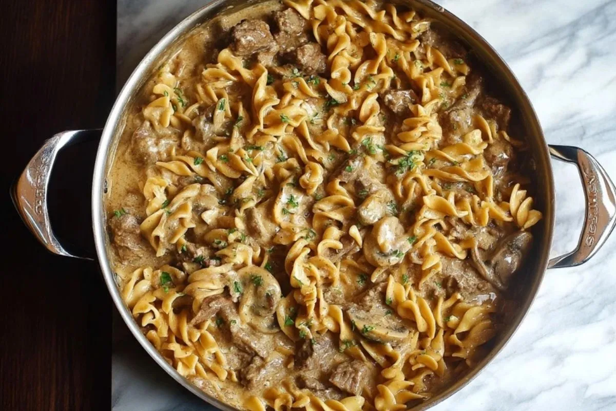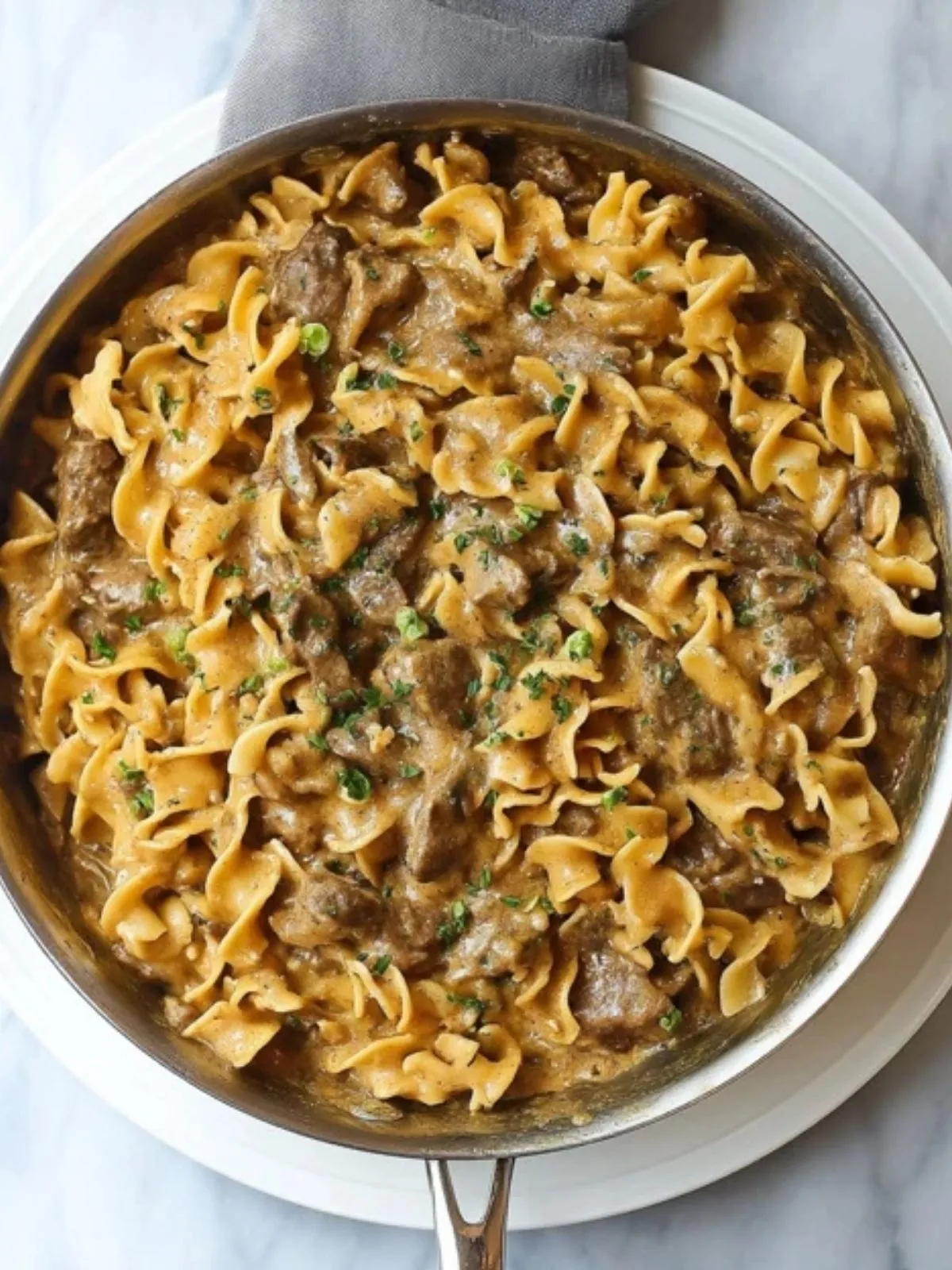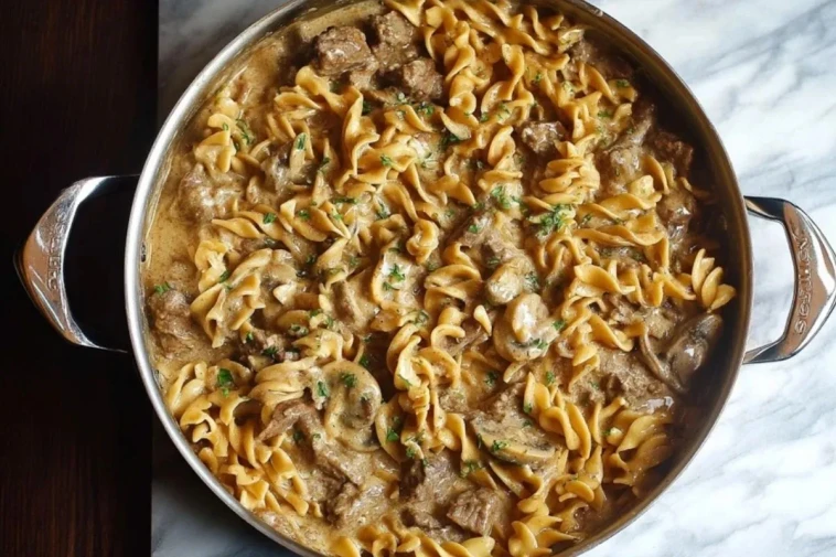 Crémeux, réconfortant et riche en saveurs, le Boeuf Stroganoff En Une Seule Marmite est le plat parfait pour un dîner familial sans complication. La viande tendre, les champignons parfumés et les pâtes enrobées d’une sauce onctueuse créent un ensemble irrésistible.