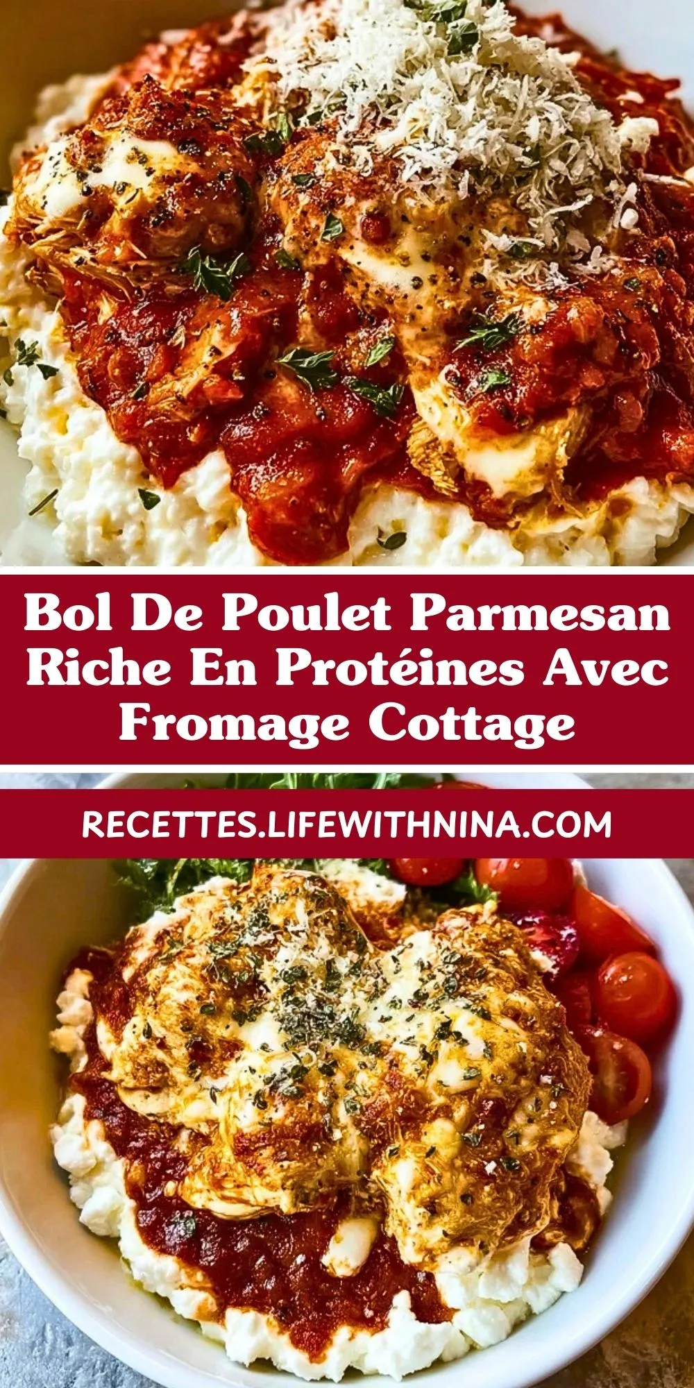 Épinglez ce bol de poulet parmesan riche en protéines avec fromage cottage