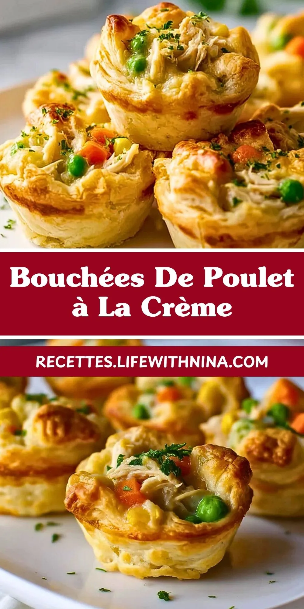 Les bouchées de poulet à la crème sont idéales pour varier des quiches ou tartes salées, tout en offrant une présentation chic et originale. Elles se préparent à l’avance et se réchauffent en un clin d’œil, ce qui en fait une option parfaite pour les repas improvisés ou pour impressionner vos invités sans stress.