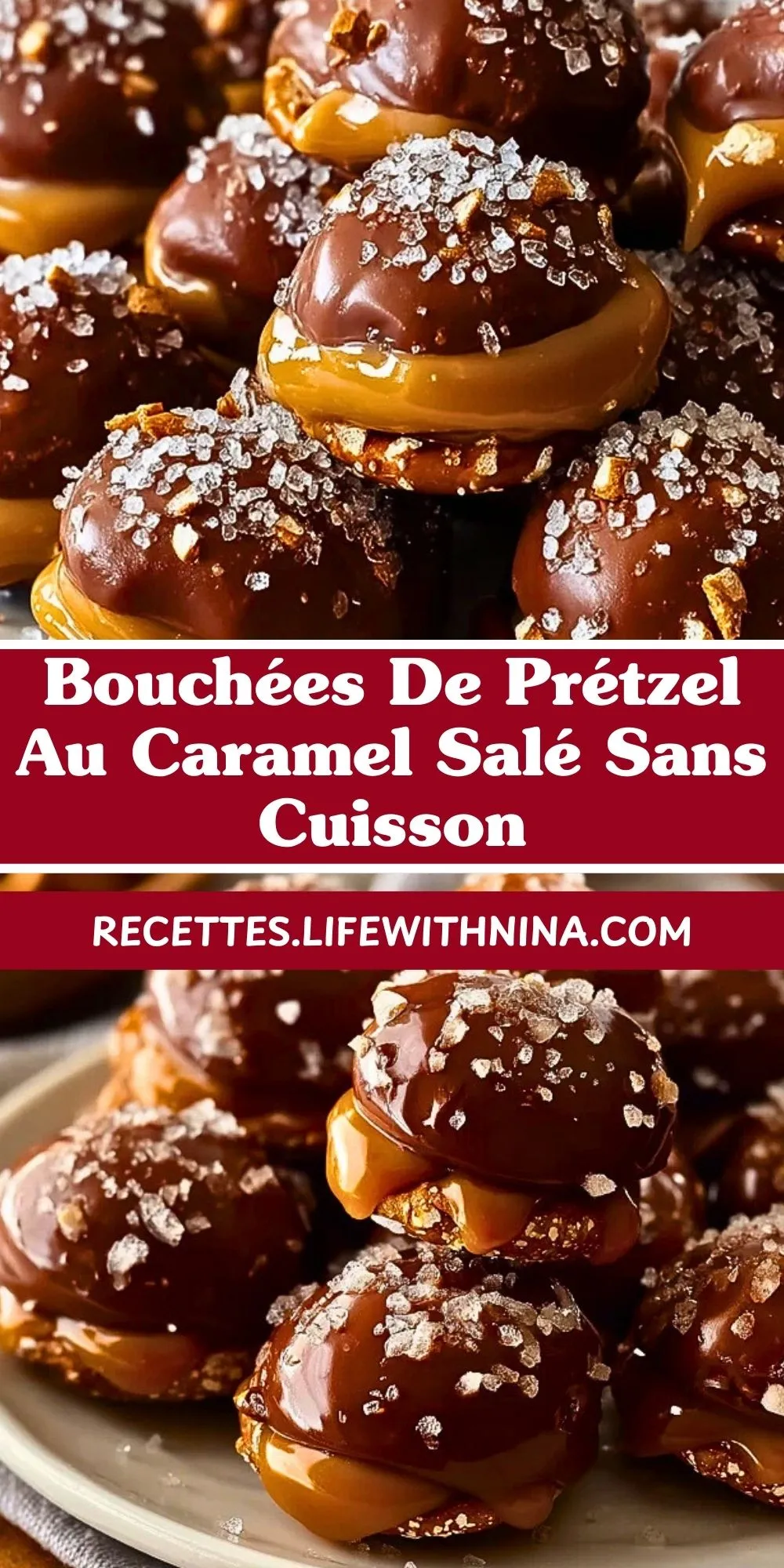 Des bouchées ultra gourmandes à base de prétzels croquants, caramel fondant, chocolat et fleur de sel. Sans cuisson, prêtes en quelques minutes, parfaites pour un goûter, une fête ou un cadeau maison.