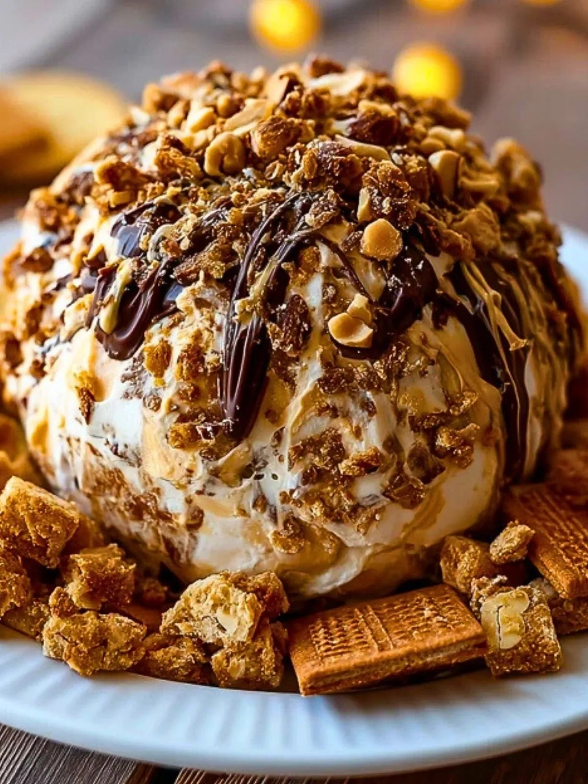 Servez la Boule De Fromage Reeses bien fraîche, entourée de crackers sucrés, de biscuits sablés ou même de morceaux de brioche légèrement toastés.