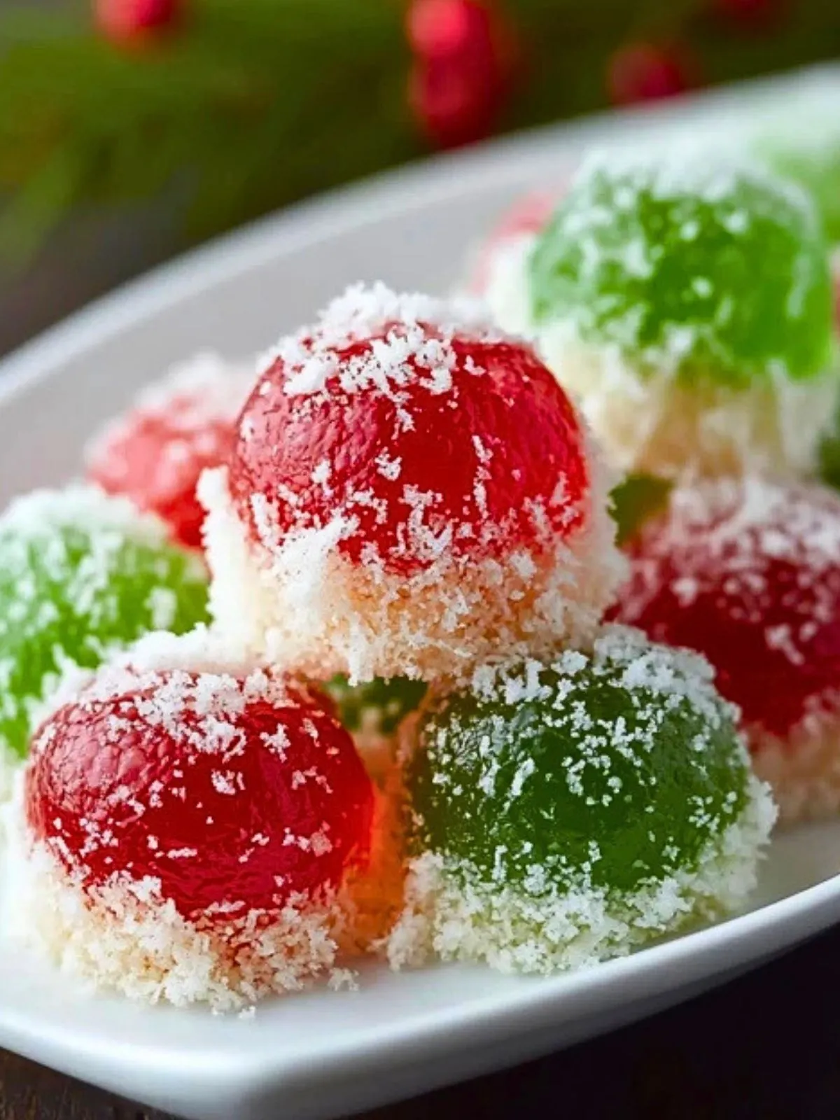 Des boules de Jello fruitées, colorées et enrobées de sucre, parfaites pour apporter de la magie à vos tables de Noël. Simples à préparer, ces bouchées festives font sensation auprès des petits comme des grands !