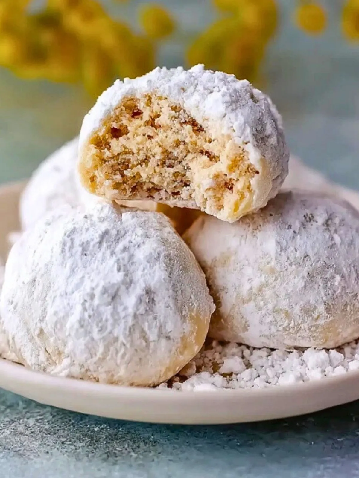 Servez les Boulettes De Neige Au Fromage À La Crème Fondantes à température ambiante, accompagnées d’un café, d’un thé ou d’un chocolat chaud. Elles sont parfaites sur un plateau de biscuits de Noël, en cadeau gourmand dans une jolie boîte en métal ou simplement pour un goûter d’hiver cosy.