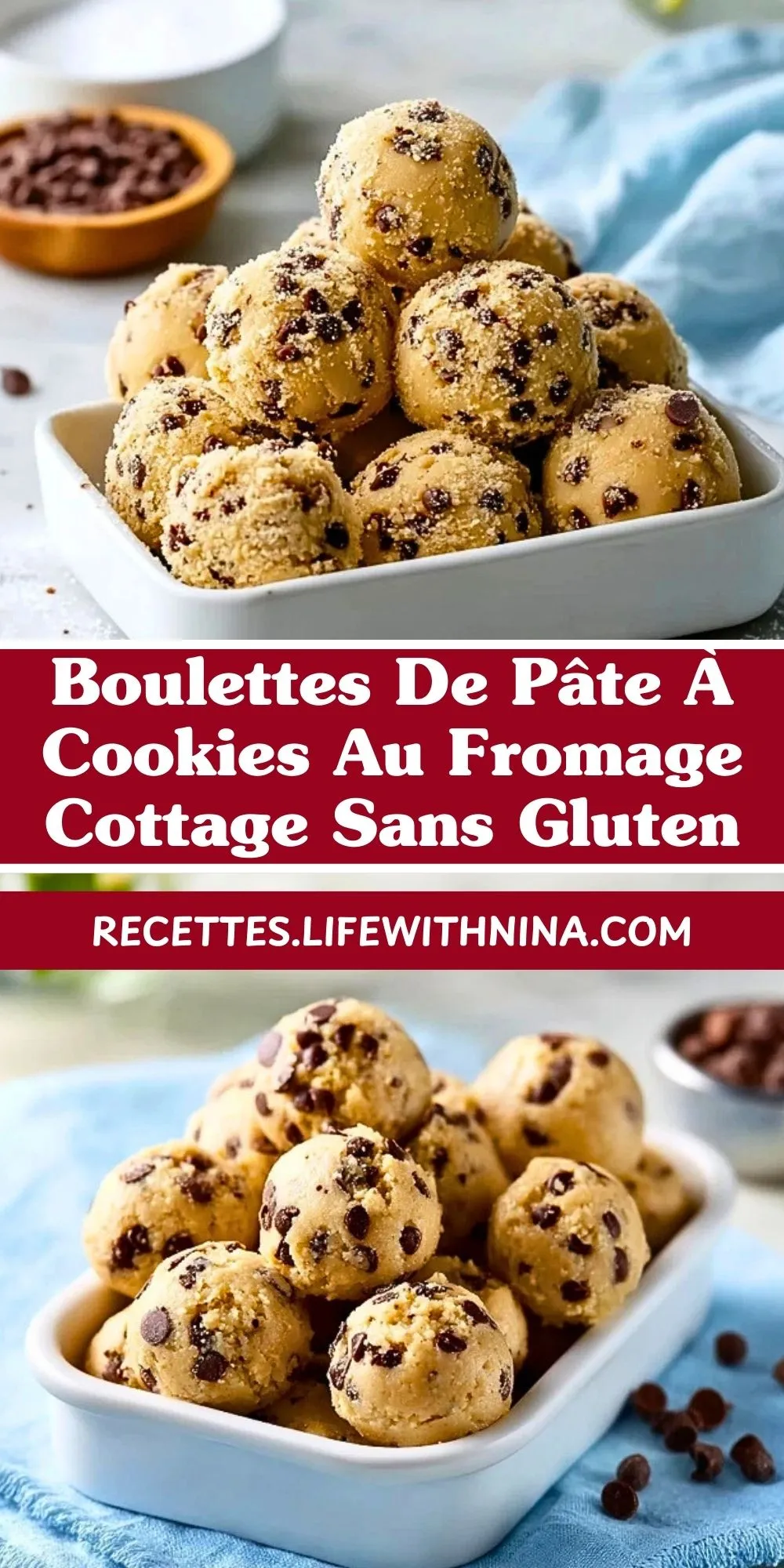 Keywords: boulettes pâte à cookies, fromage cottage, sans gluten, collation sans cuisson, energy bites