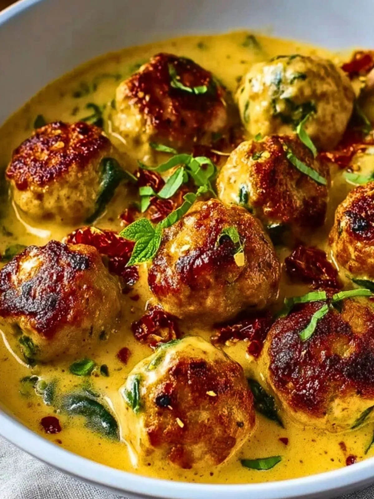 C’est l’alliance subtile entre une viande tendre, bien assaisonnée et dorée, et une sauce crémeuse riche en goût grâce aux herbes, aux épices et à une touche de tomates séchées. Le contraste entre la texture moelleuse des boulettes et la sauce onctueuse rend ce plat inoubliable. De plus, la recette est simple, rapide et s’adapte à toutes les envies !
