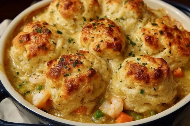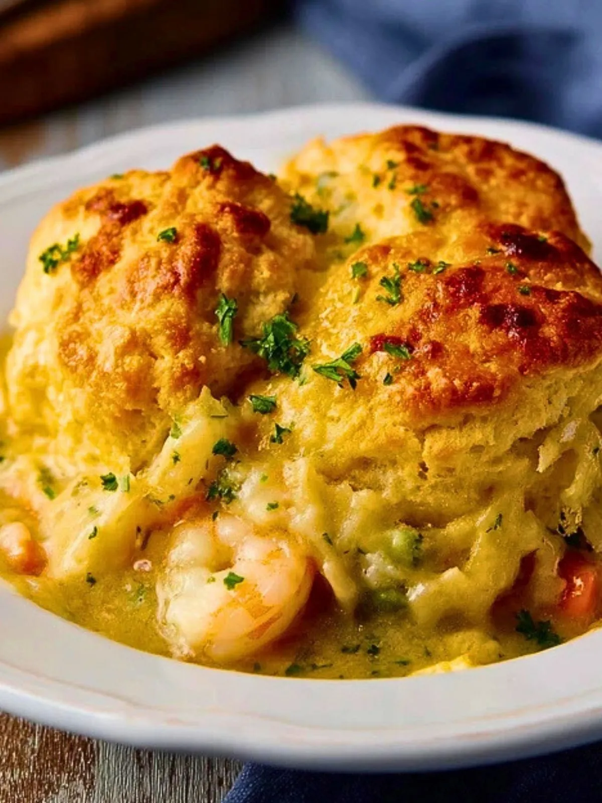 La brouillade de fruits de mer aux biscuits au cheddar est un plat généreux, festif et ultra-réconfortant : un mélange de fruits de mer et légumes dans une sauce crémeuse, le tout gratiné sous de savoureux biscuits au cheddar dorés au four. Une recette idéale pour impressionner lors d’un repas convivial ou familial.