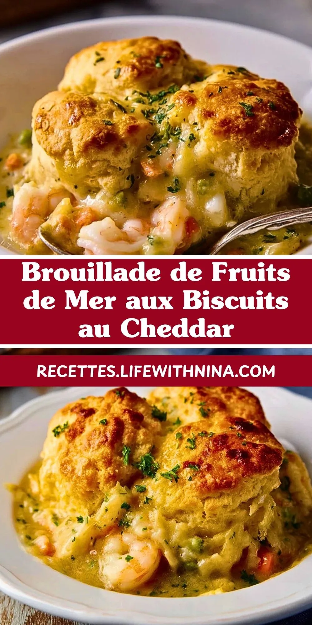 C’est l’association entre la saveur iodée des fruits de mer, la texture crémeuse de la sauce et le côté doré et moelleux des biscuits au cheddar qui fait toute la différence. Ce plat familial peut être décliné avec différents fruits de mer et s’adapte aux envies. Il apporte chaleur et convivialité à la table, tout en restant facile à préparer.
