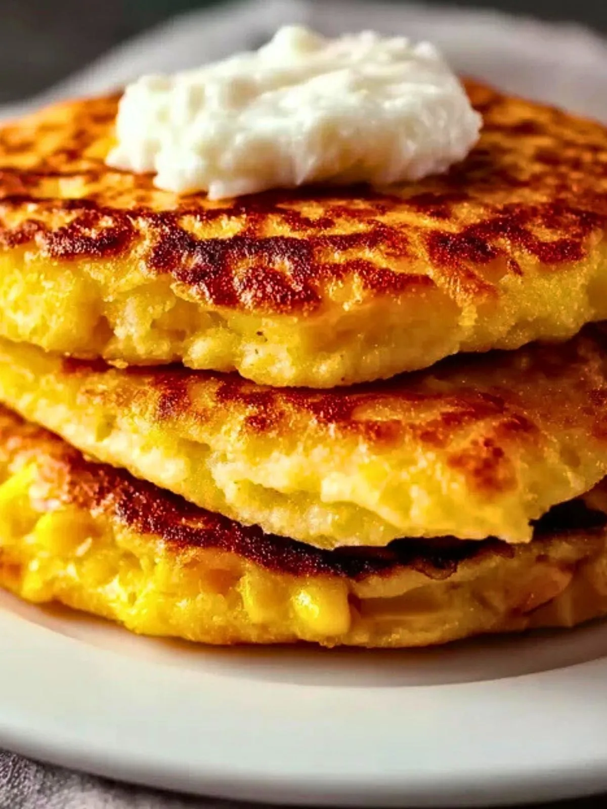Faites chauffer une poêle antiadhésive à feu moyen et graissez-la légèrement. Déposez une grosse cuillerée de pâte et étalez pour former une galette d’environ 1 cm d’épaisseur. Laissez cuire 3 à 4 minutes de chaque côté, jusqu’à ce que la cachapa soit bien dorée et moelleuse.