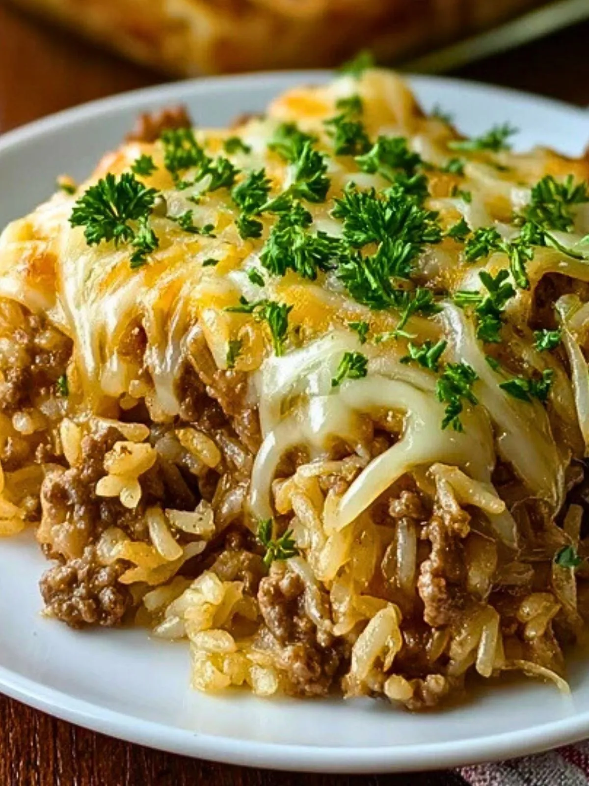 Un plat convivial et ultra-réconfortant, mélangeant bœuf haché, oignons caramélisés, riz moelleux et un généreux gratin de fromage. Facile à préparer, idéal pour un repas familial ou à préparer en avance. Une alliance parfaite de douceur et de saveurs riches, à chaque bouchée.