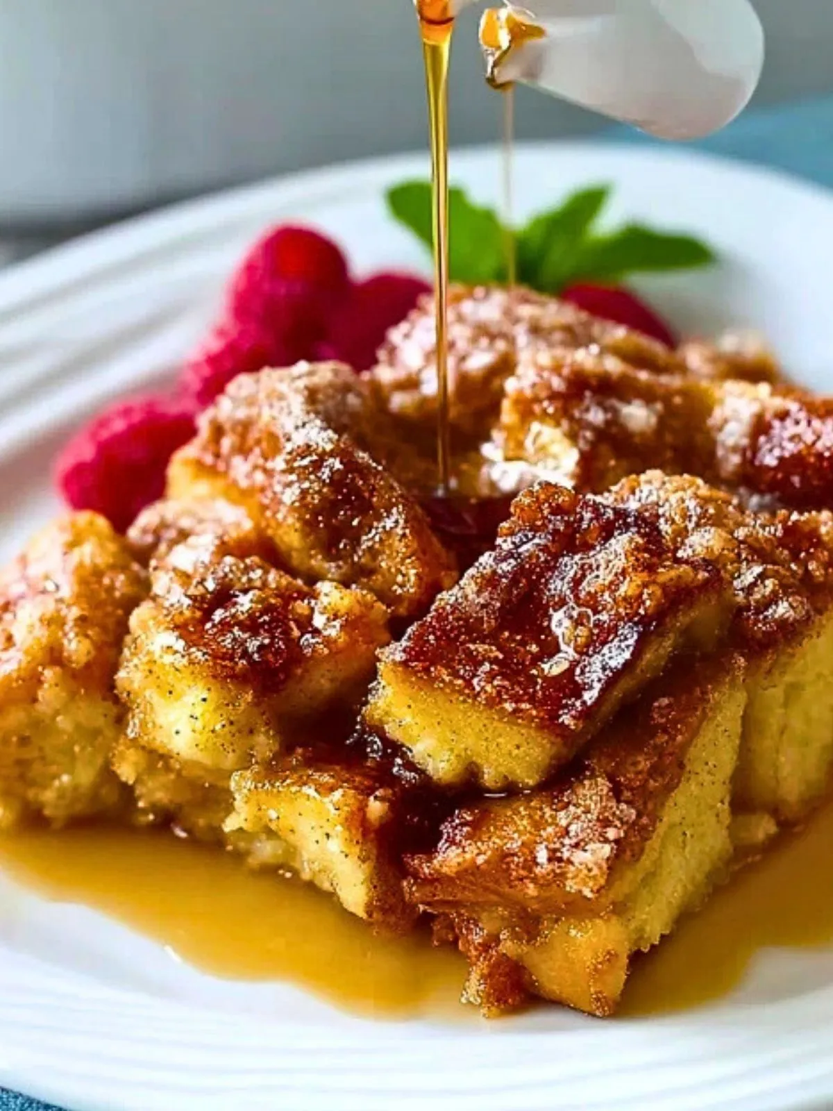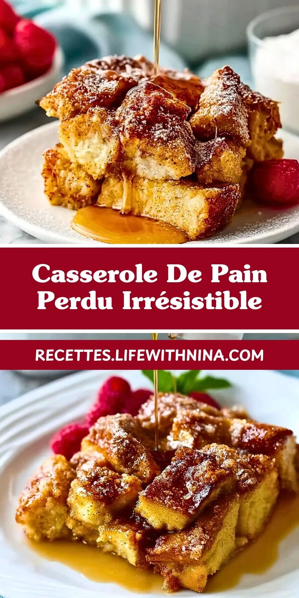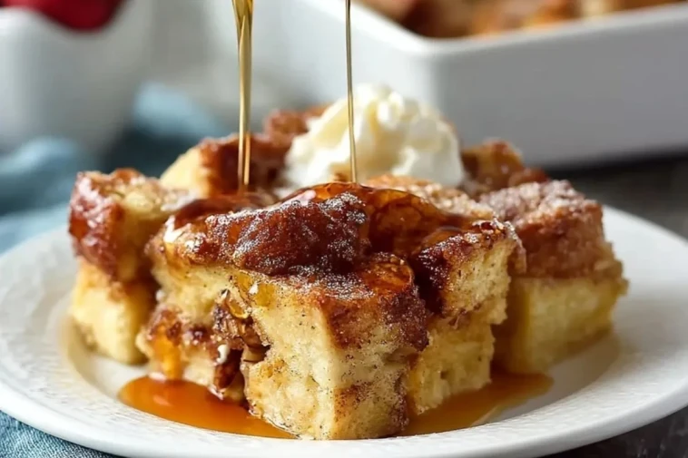 Imaginez une matinée ensoleillée, le doux parfum de la cannelle flottant dans l’air, et une casserole dorée qui sort du four. Cette casserole de pain perdu irrésistible est le genre de recette qui transforme un petit-déjeuner ordinaire en moment de fête. Moelleuse à l’intérieur, croustillante à l’extérieur, chaque bouchée fondante rappelle les souvenirs d’enfance et les dimanches en famille.