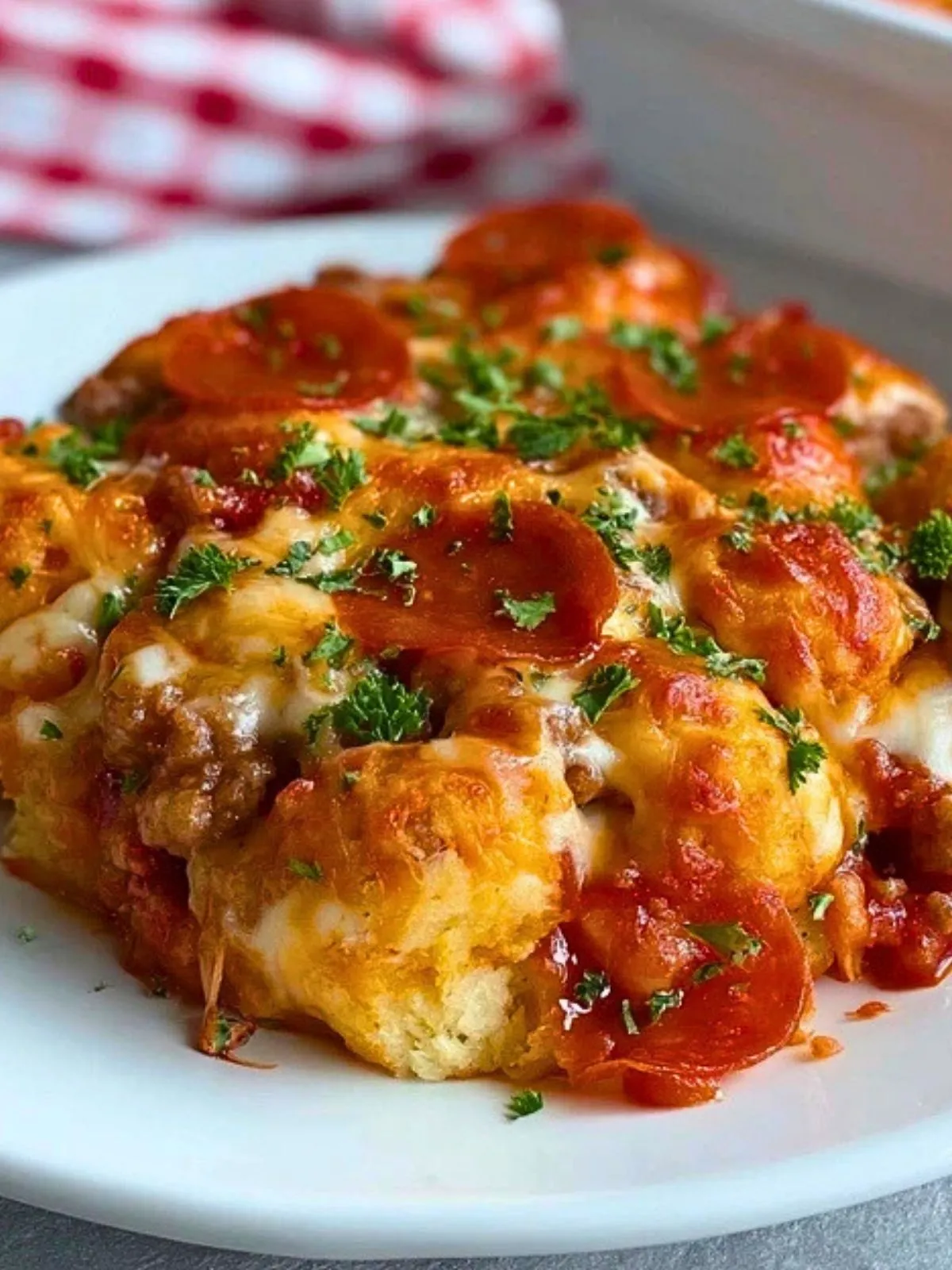 Une casserole généreuse inspirée des saveurs classiques de la pizza, avec des pâtes moelleuses, une sauce tomate parfumée, de la viande hachée, du pepperoni et une belle couche de fromage fondant. C’est un plat convivial, facile à préparer, parfait pour un dîner familial réconfortant.