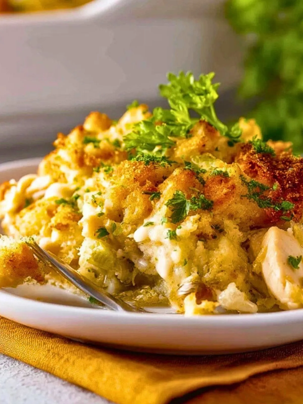 La casserole de poulet et de farce délicieuse est idéale pour un repas familial parce qu’elle combine des ingrédients simples dans un plat unique, nourrissant et facile à servir. Elle peut être préparée à l’avance, plaît souvent aux petits comme aux grands, et offre ce mélange très apprécié de textures moelleuses, crémeuses et croustillantes.