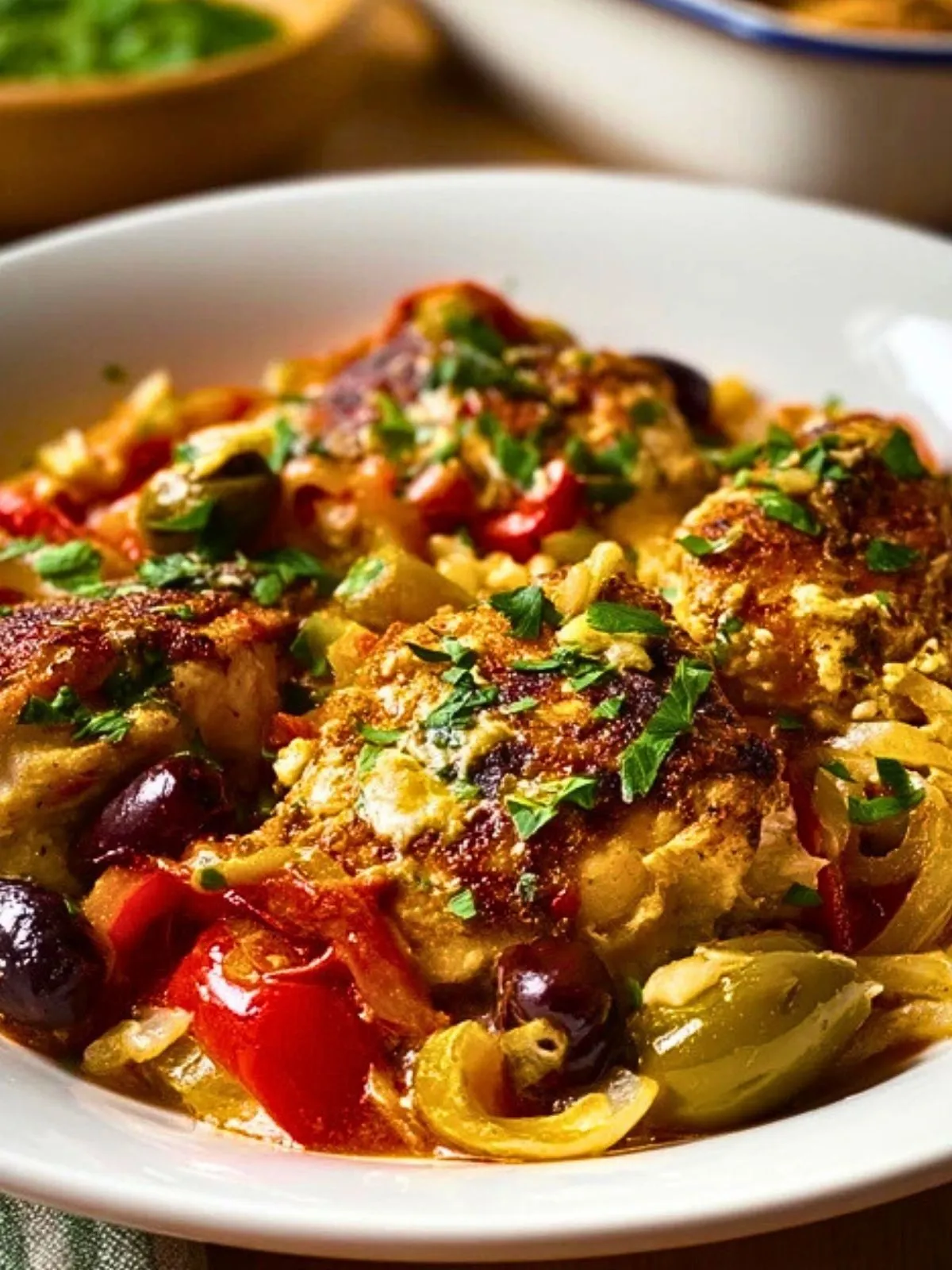 La Casserole De Poulet Méditerranéenne Rapide rassemble toutes les saveurs ensoleillées du sud dans un plat simple et généreux. Le poulet doré se mêle aux poivrons fondants, aux olives savoureuses et aux herbes parfumées pour un résultat coloré et irrésistiblement parfumé.