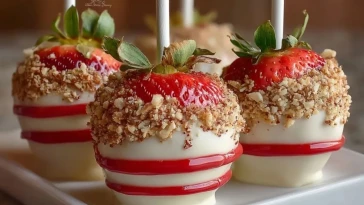 • Pommes d’Amour aux Fraises et Biscuit Écrasé