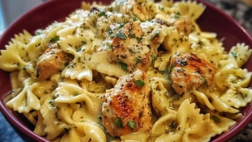 • Poulet à l’Ail et Mozzarella avec Farfalles en Sauce Crémeuse Fromagée