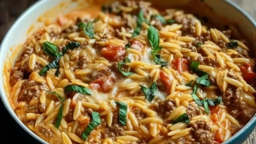 • Boeuf Haché Orzo à la Sauce Crème de Tomate