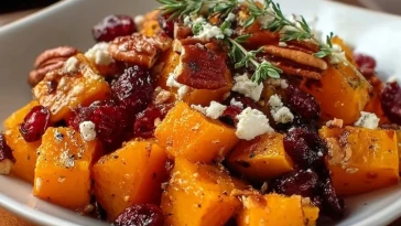 • Courge Butternut Rôtie au Miel, Canneberges, Noix de Pécan et Feta