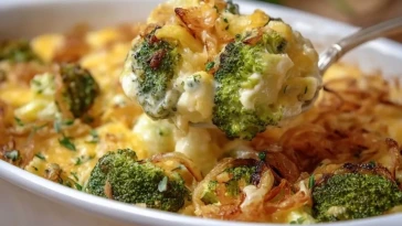 • Casserole de Brocoli au Fromage Crémeux et aux Oignons Français