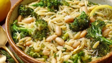 • Orzo Aux Brocolis, Haricots Blancs, Citron Et Parmesan