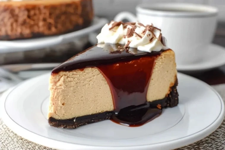 Servez ce cheesecake bien frais, accompagné d’un expresso ou d’un café frappé. Décorez chaque part d’un nuage de chantilly et de copeaux de chocolat pour une présentation élégante. Conservez-le au réfrigérateur, bien couvert, jusqu’à 4 jours. Il gagne en saveur après une nuit de repos.