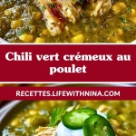 Épinglez cette recette sur votre tableau Pinterest spécial « Soupes & Plats mijotés » pour la retrouver facilement. Dites-moi en commentaires comment la vôtre s’est passée : avez-vous ajouté d’autres légumes, ou remplacé la crème par une version végétale ? Toutes vos variantes m’intéressent ! N’hésitez pas à poser vos questions pour réussir à coup sûr ce chili vert crémeux au poulet.
