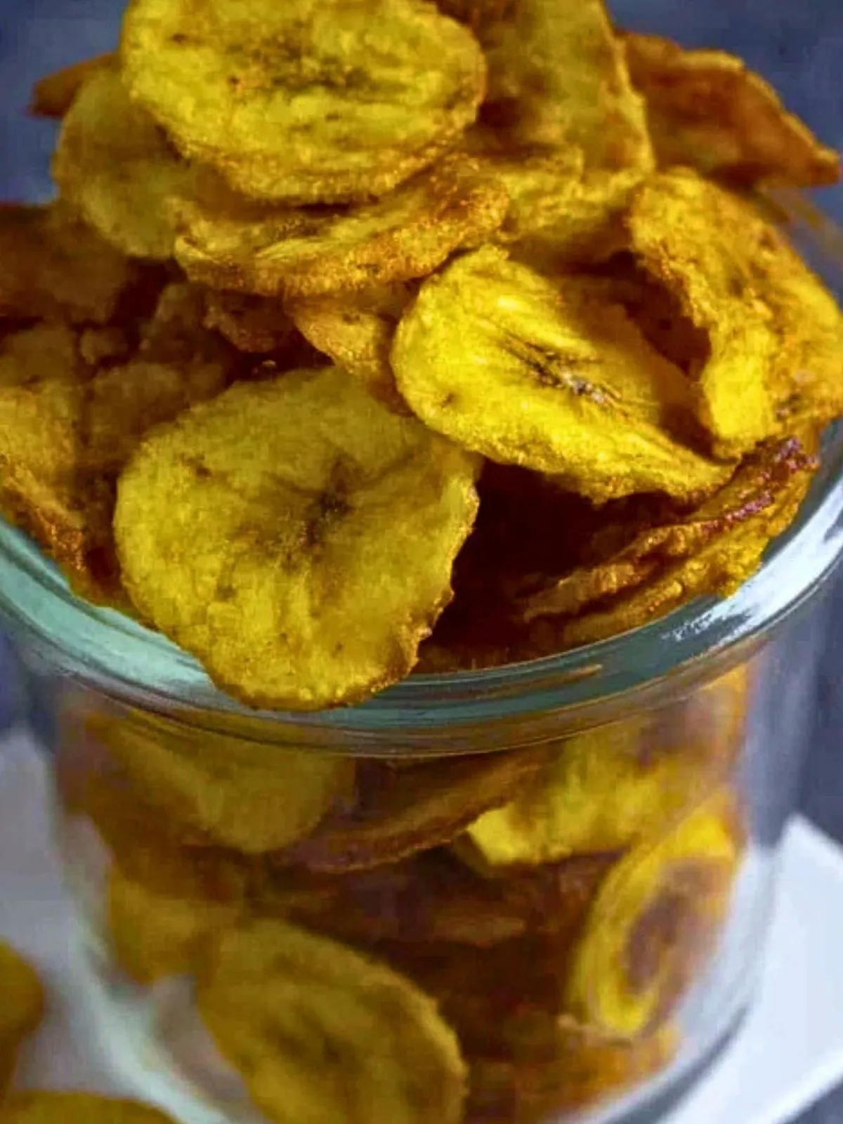 Keywords: chips de banane, banane plantain, snack sain, apéritif exotique
