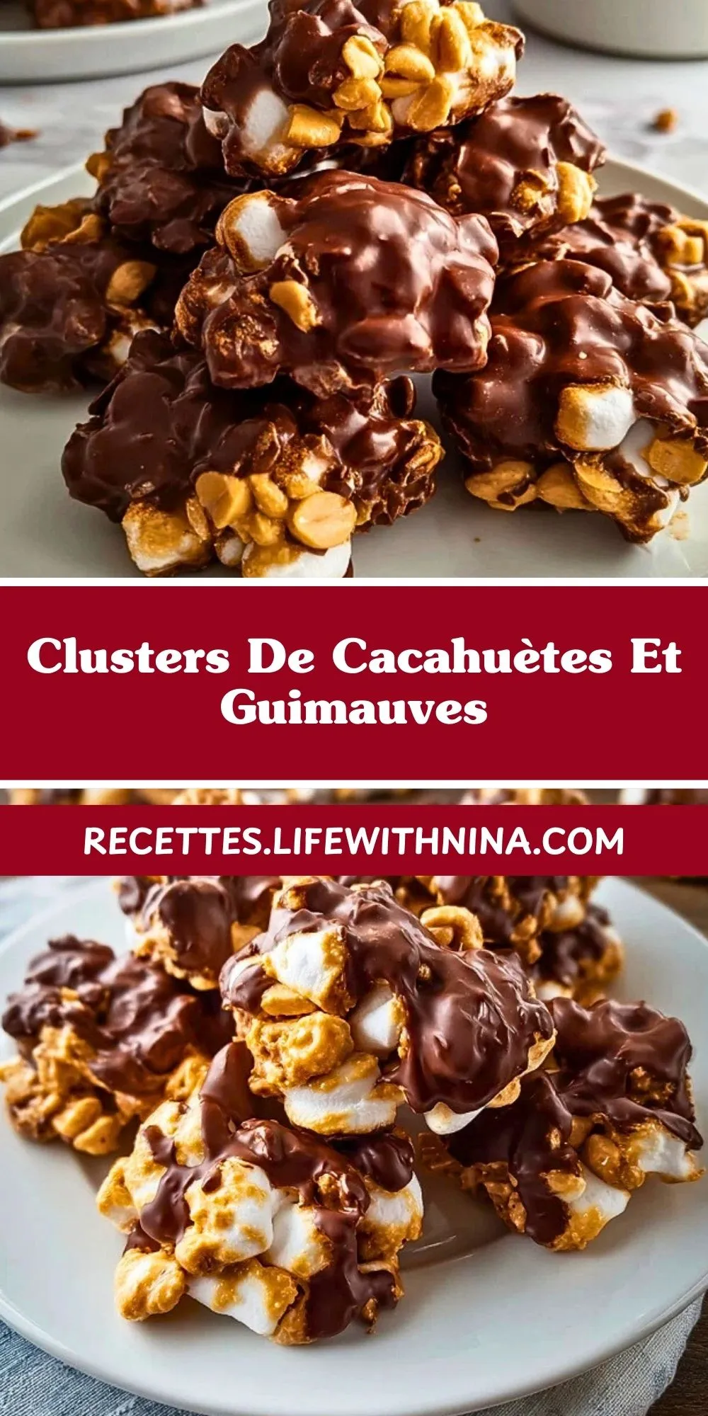 Keywords: clusters, cacahuètes, guimauves, chocolat, facile, rapide, sans cuisson