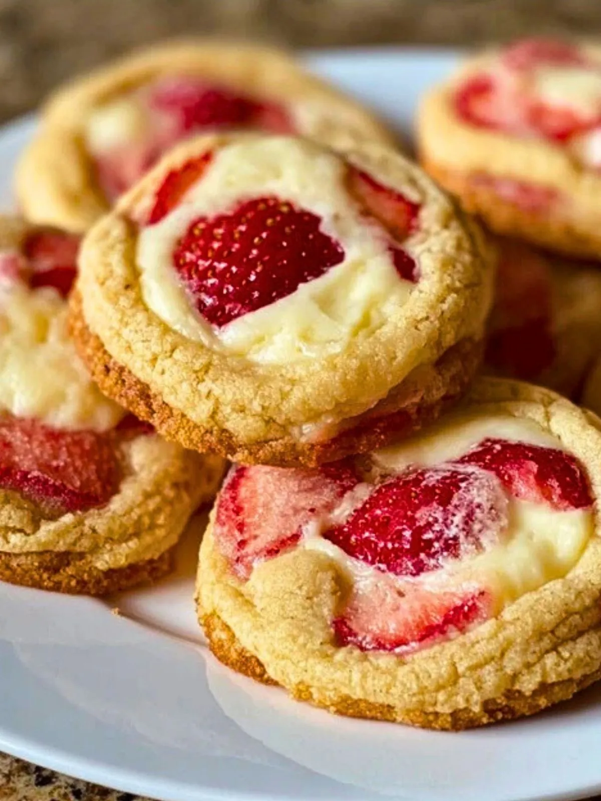 Parfaits pour les goûters d’été ou pour toutes les envies de douceur, ces cookies séduisent par leur texture contrastée : le croquant du biscuit, la tendresse du cheesecake et la note acidulée de la fraise s’entremêlent pour un plaisir irrésistible. Testez-les, ils deviendront vite un incontournable de votre répertoire sucré !
