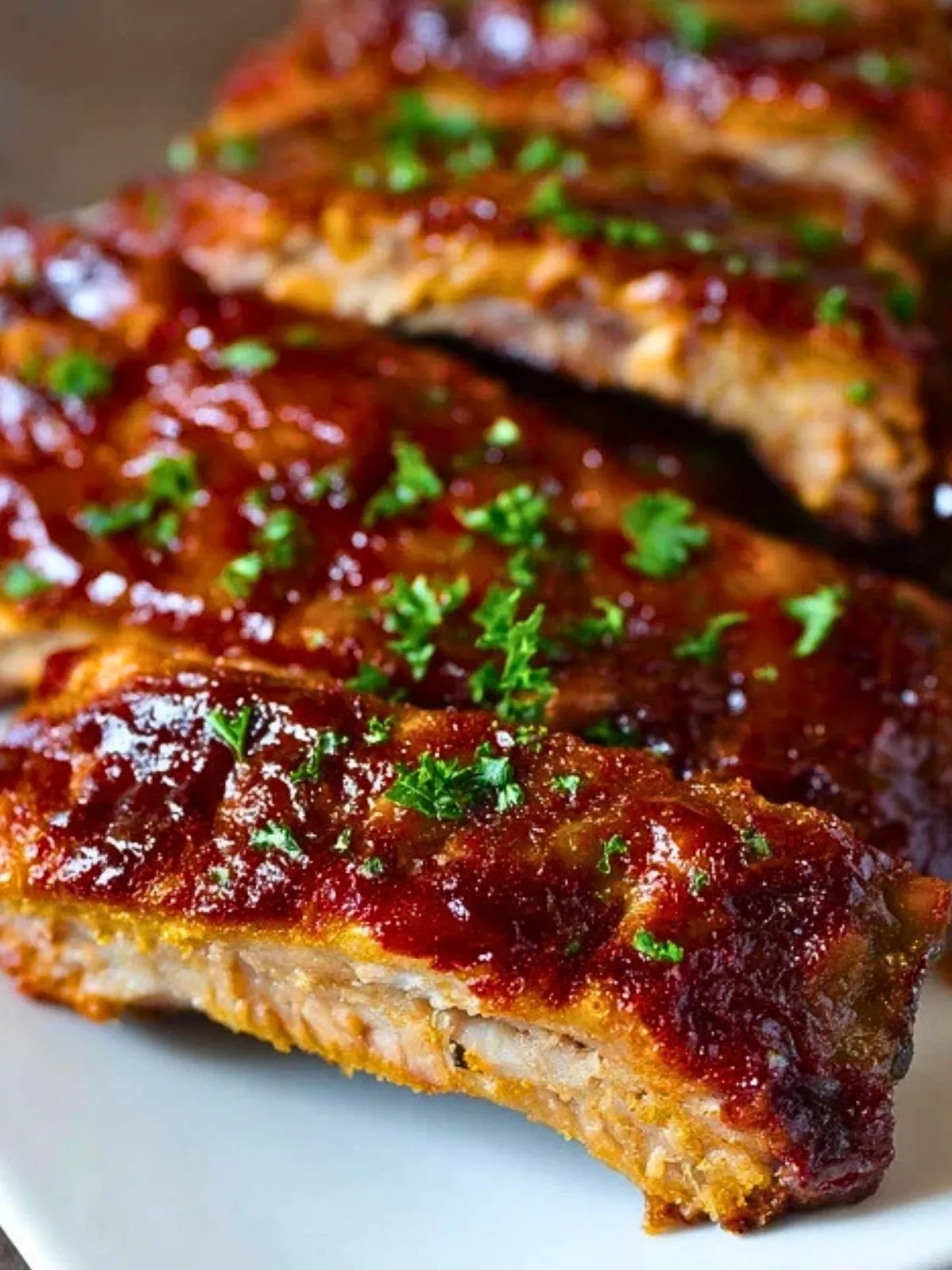 La cuisson en cocotte permet une répartition homogène de la chaleur et évite le dessèchement. Les côtes cuisent lentement dans leur jus et s’imprègnent profondément de la sauce barbecue, offrant une texture tendre qui se détache facilement de l’os.