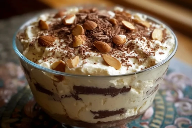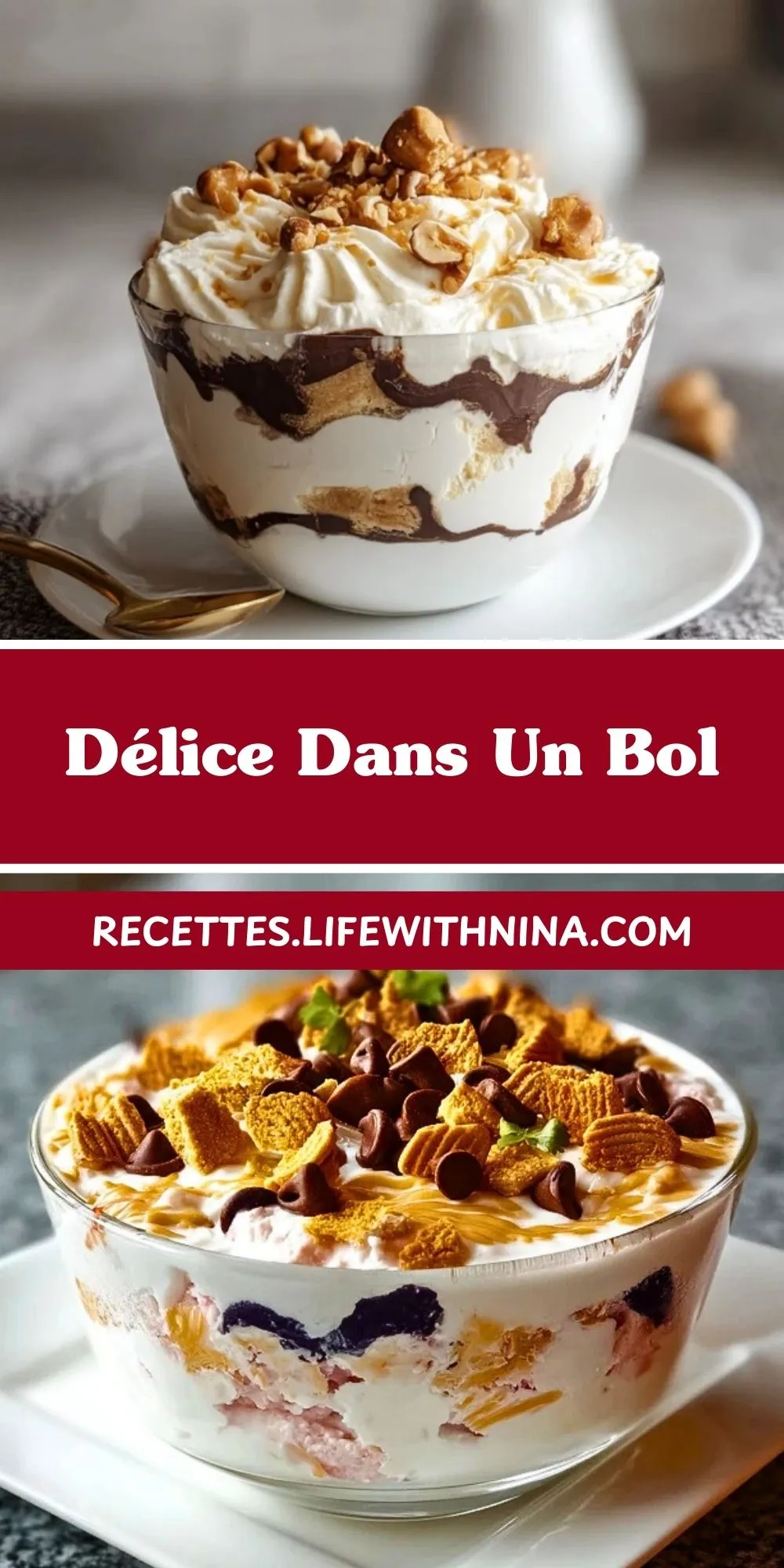 Ce dessert au nom évocateur est une véritable invitation à la gourmandise : des couches onctueuses de crème, de chocolat fondant, d’amandes croquantes et de biscuits moelleux. Le « délice dans un bol » est le parfait dessert à partager, convivial, facile à préparer et absolument irrésistible en fin de repas ou lors d’une grande tablée. Sa présentation en verrine ou en grand bol transparent met en valeur toutes ses textures.