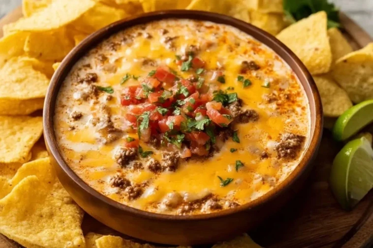 Une trempette fromagère, crémeuse et relevée, mêlant bœuf haché, tomates aux piments verts et cheddar fondant. Parfaite pour un apéritif convivial à partager autour de chips de maïs !