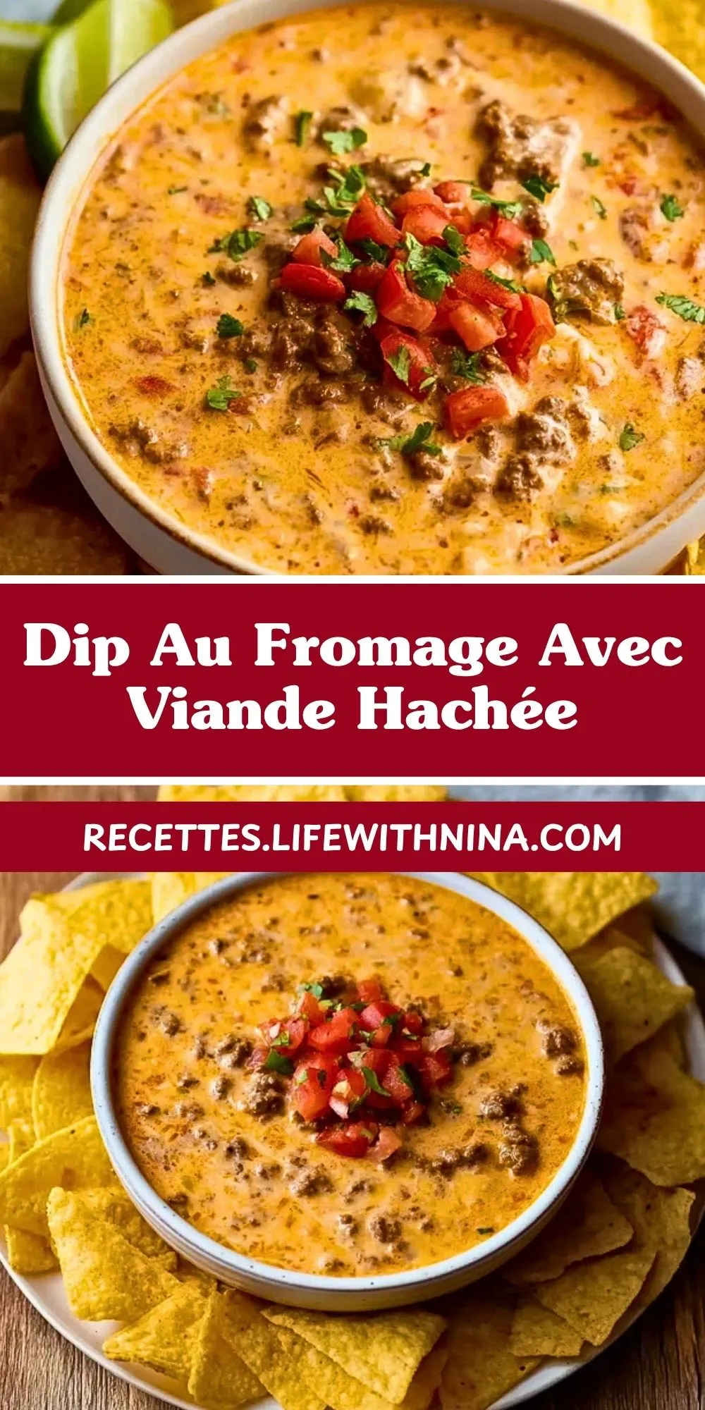 Keywords: dip au fromage, viande hachée, apéritif chaud, dip crémeux, recette à partager