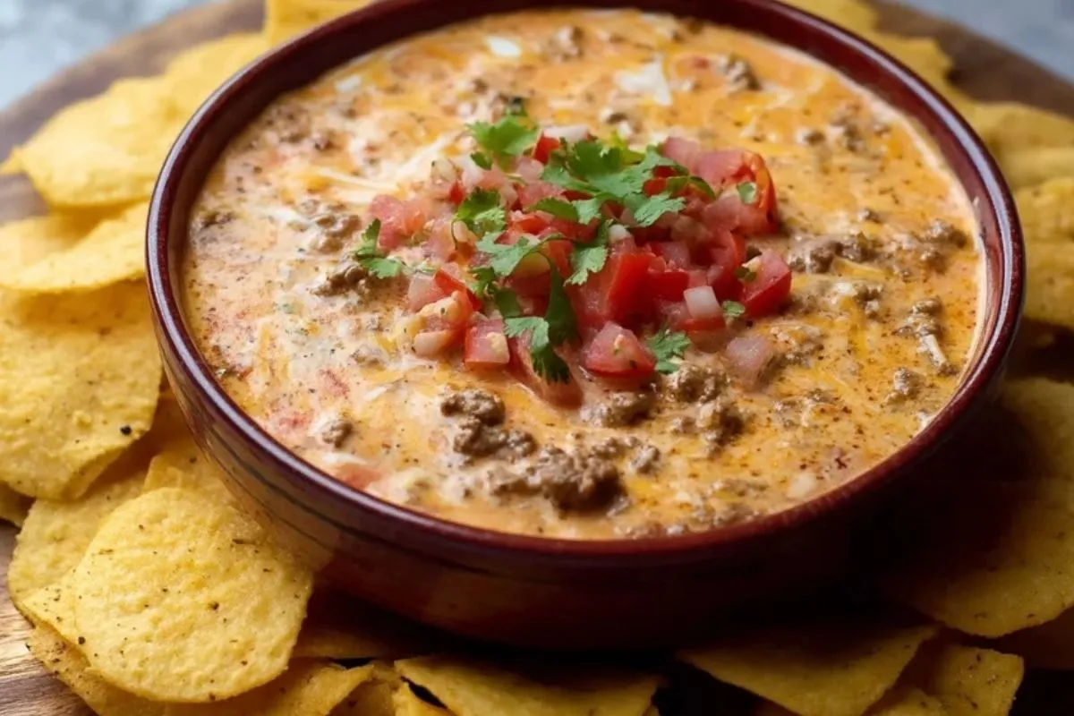 Ce dip plaît autant parce qu’il réunit tout ce que l’on aime dans une recette de partage : une texture ultra crémeuse, des saveurs riches, une préparation rapide et un service très simple. La viande hachée apporte du caractère, le fromage donne le côté fondant, et les assaisonnements créent un résultat chaleureux et gourmand qui fonctionne aussi bien pour l’apéritif que pour un repas décontracté.