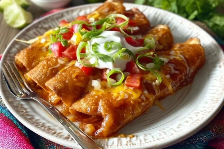 Servez les enchiladas bien chaudes, nappées de sauce fondante et de fromage gratiné, avec une cuillerée de crème fraîche, quelques rondelles d’oignons nouveaux, des dés de tomate et de la coriandre fraîche. Un peu de jus de citron vert et une salade croquante (laitue, maïs, avocat) complètent parfaitement le plat pour un repas équilibré et coloré.
