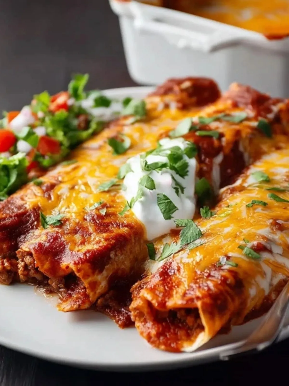 Keywords: enchiladas, bœuf, sauce rouge, gratin