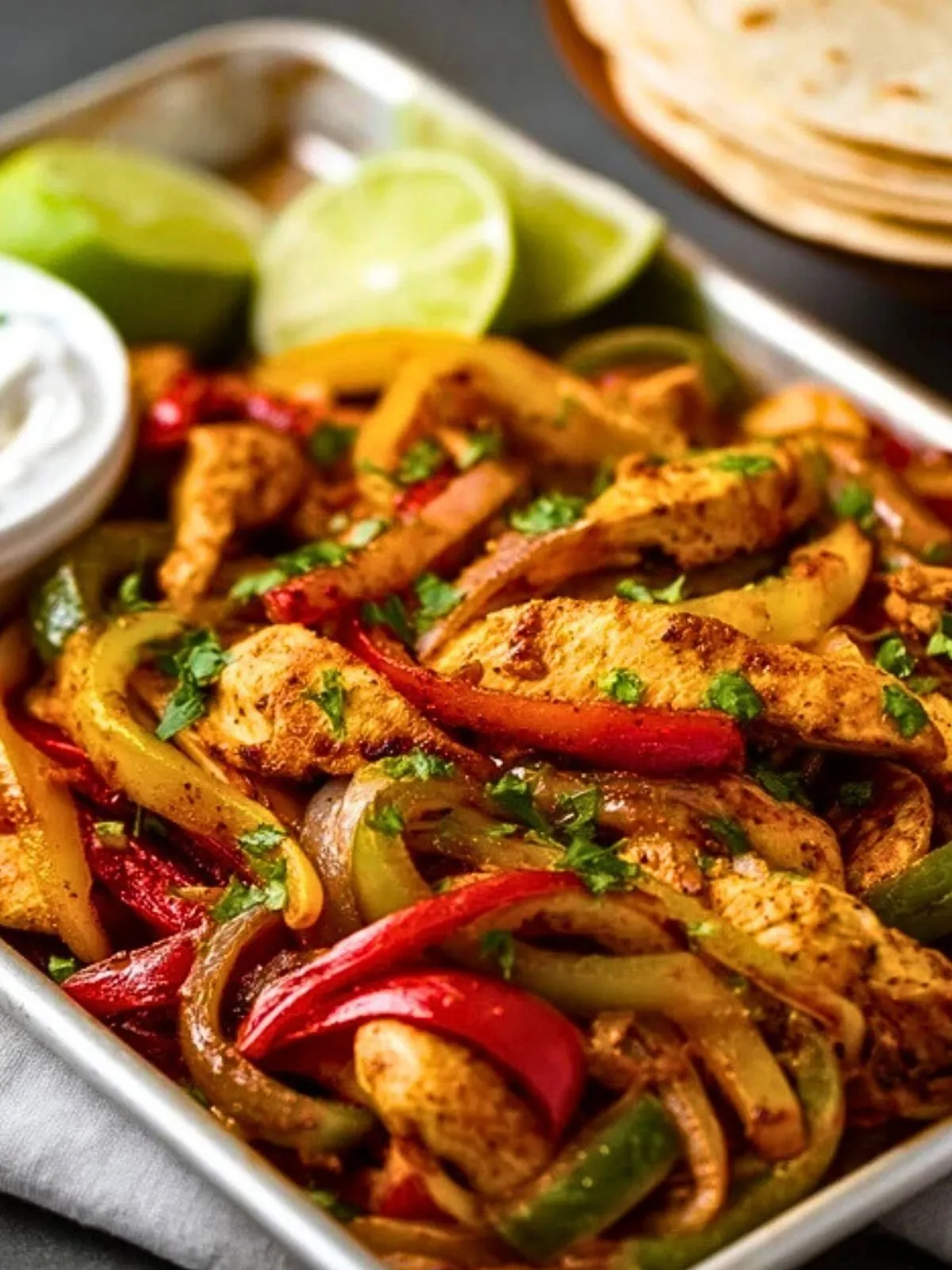 Cette version au four séduit par sa simplicité, mais aussi par son goût intense. Les légumes deviennent tendres tout en gardant un léger croquant, tandis que le poulet s’imprègne des épices et des sucs de cuisson. Avec quelques tortillas chaudes, un filet de citron vert et une sauce fraîche, on obtient un repas convivial qui plaît toujours.