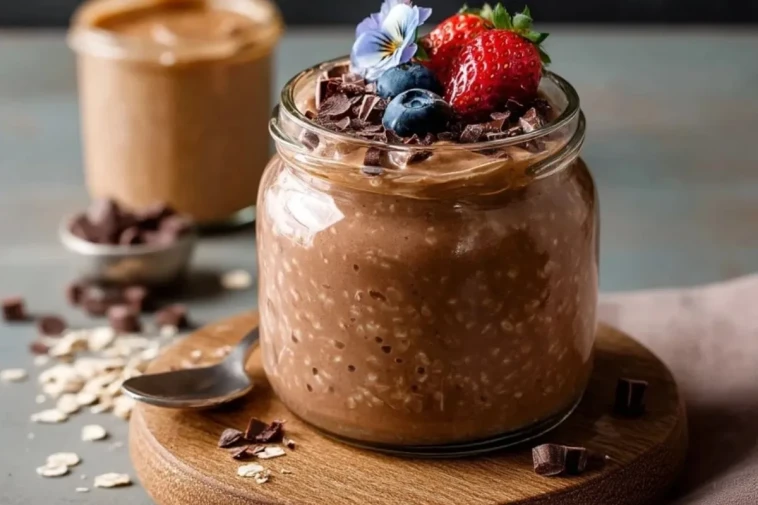 Pour une texture vraiment onctueuse et homogène, fouettez bien la poudre de protéine, le cacao et le beurre de cacahuète dans les ingrédients liquides avant de les verser sur les flocons : si ce mélange est lisse, vos flocons d’avoine seront crémeux sans grumeaux le lendemain matin.