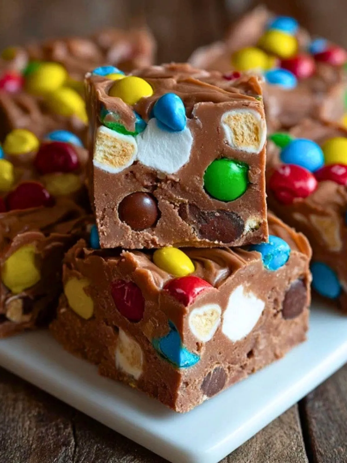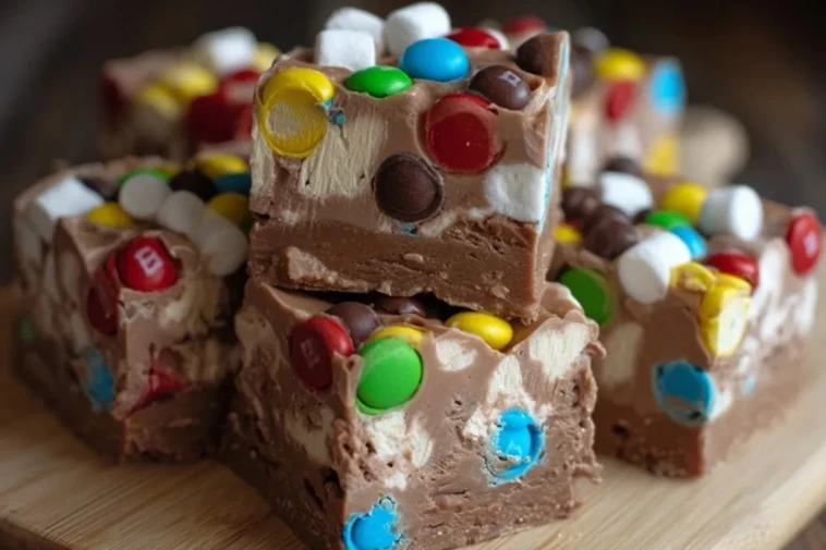 Keywords: fudge au chocolat, guimauves, M&Ms, dessert facile, gourmandise
