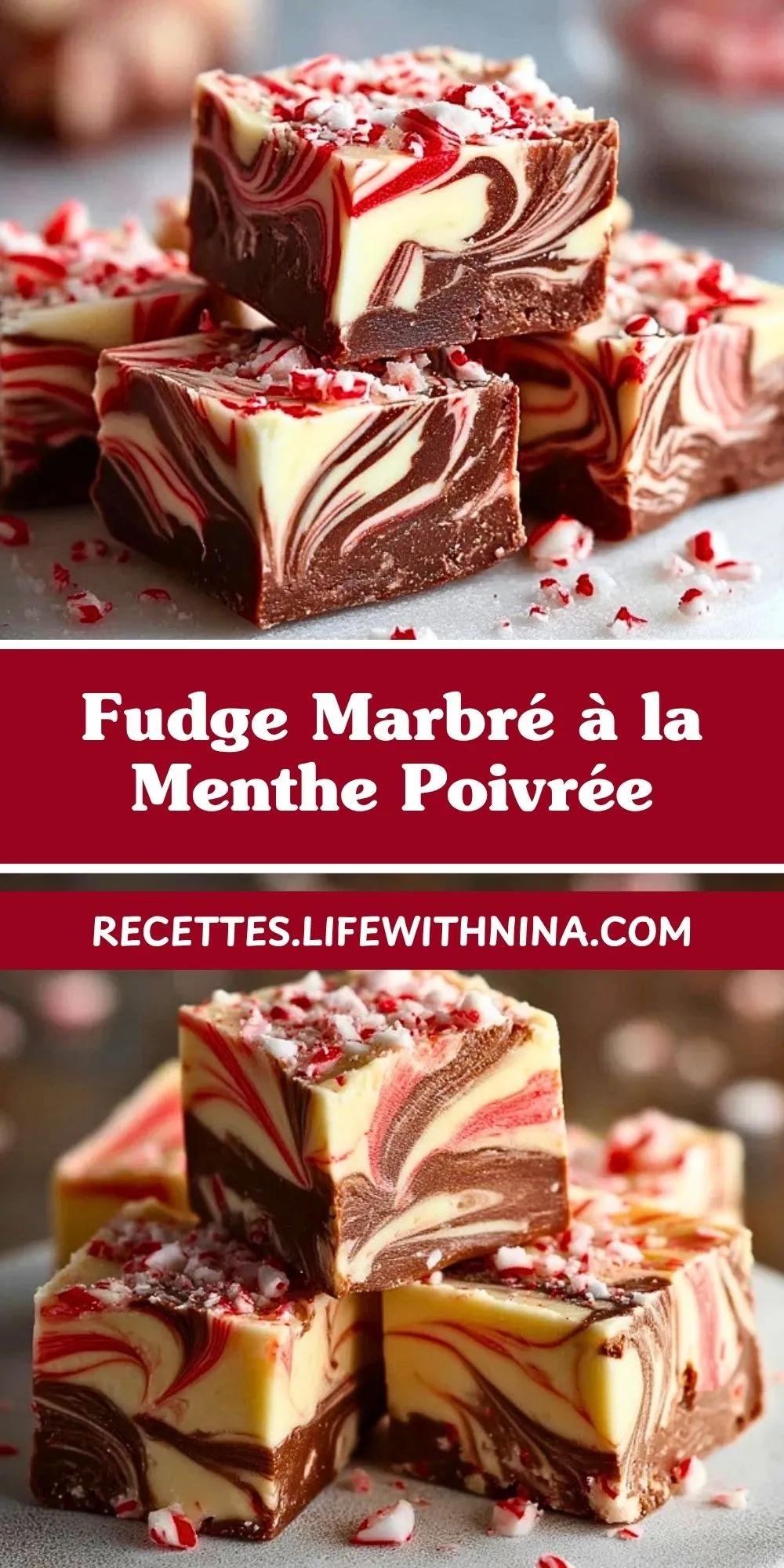 Keywords: fudge marbré, menthe poivrée, chocolat, confiserie de Noël, douceur festive